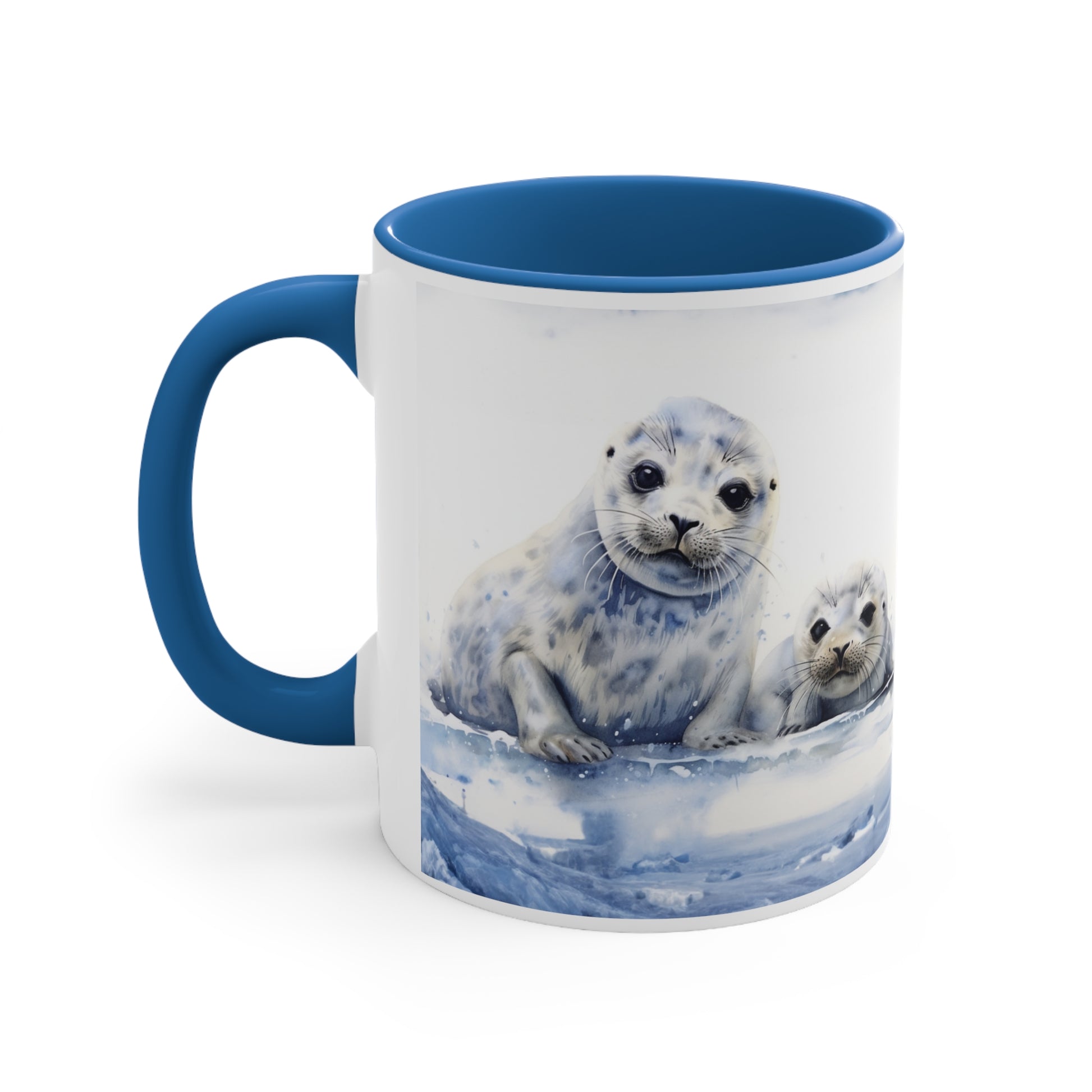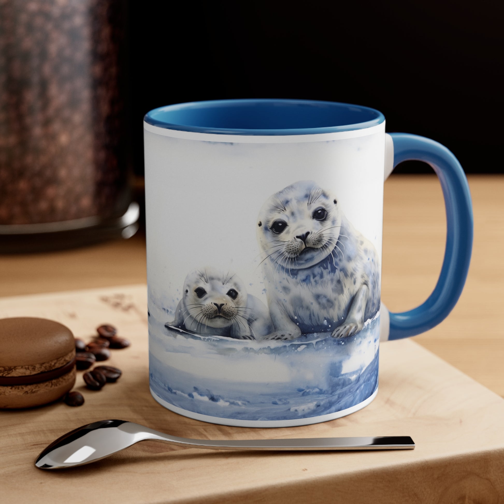 Immerse yourself in the tranquil beauty of the ocean with our exquisite 11oz Coffee Mug from the Watercolor Series. This enchanting mug is adorned with the heartwarming image of two adorable harp seal pups, captured in delicate watercolor strokes that bring their playful spirits to life.