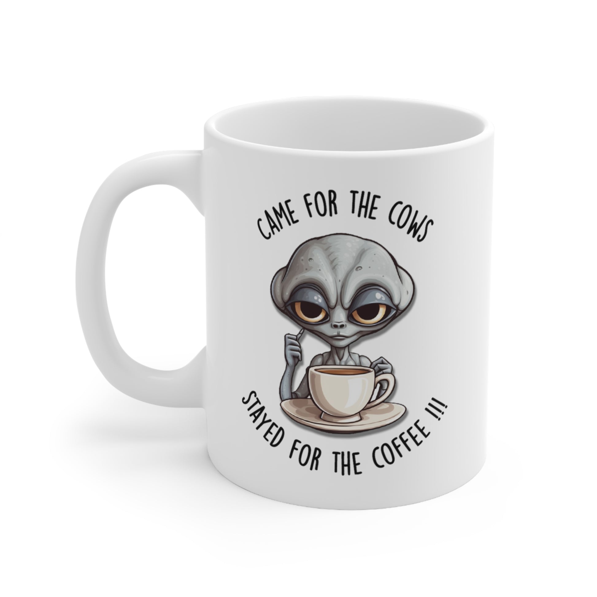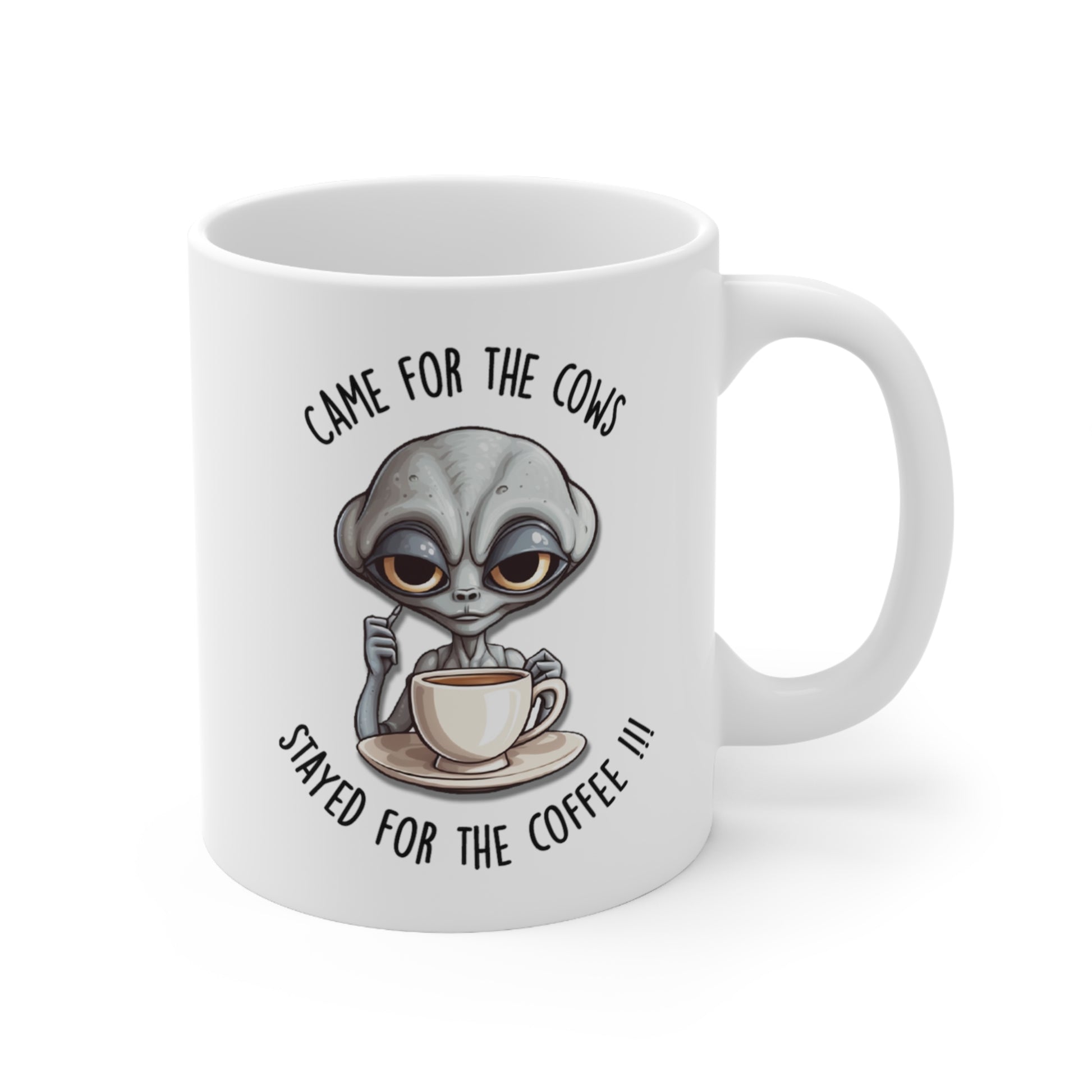 Alien Coffee Mug, "Came for the Cows Stayed for the Coffee." 11 Oz Humor/novelty/gift Coffee Mug.