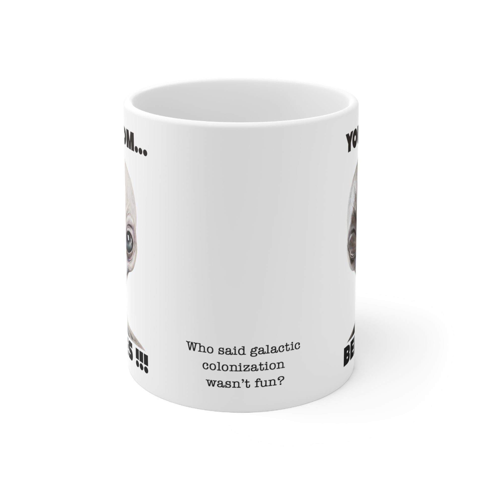 This cheeky mug stars a smug winking alien, leaving you to wonder: have they had a secret agenda all along? Sip your coffee and contemplate the mysteries of the universe with a playful twist. Get ready for intergalactic conversations and caffeine-fueled conspiracies! 🌌☕😉