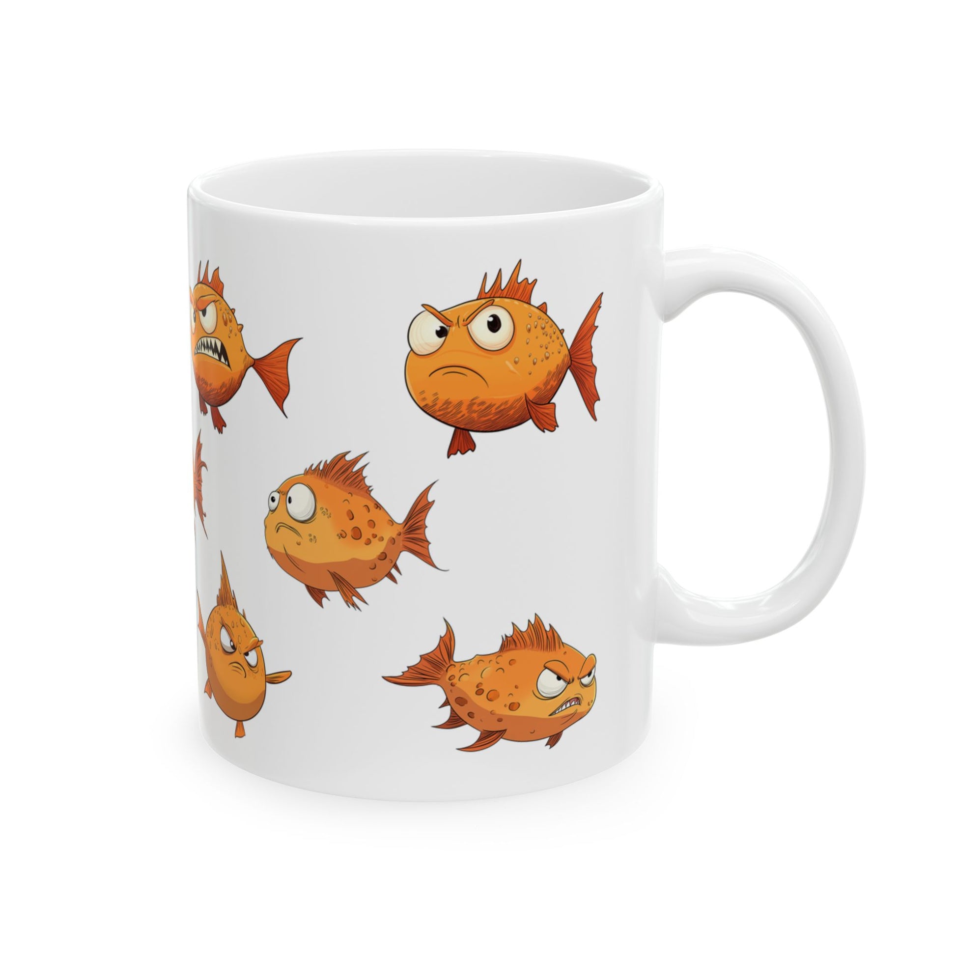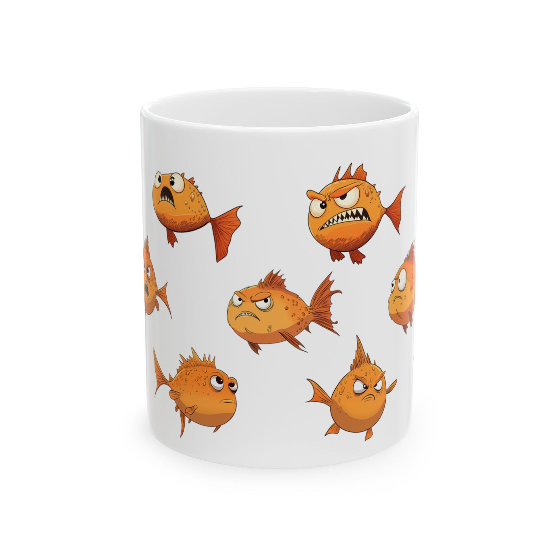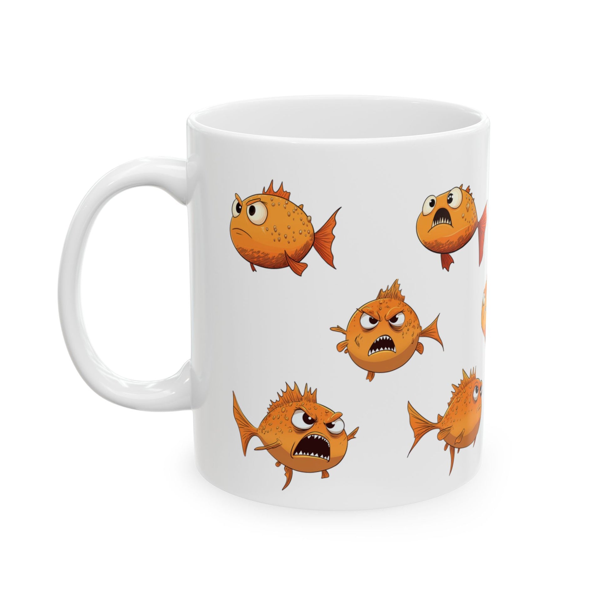 Bring some fierce underwater energy to your morning routine with our "Angry Blowfish" mug! Featuring a bunch of grumpy little blowfish swimming around its surface, this 11oz ceramic mug is full of personality. The cartoonish blowfish, with their puffed-up expressions, give off just the right amount of sass as they circle the mug in frustration, adding a fun and humorous twist to your drinkware collection.