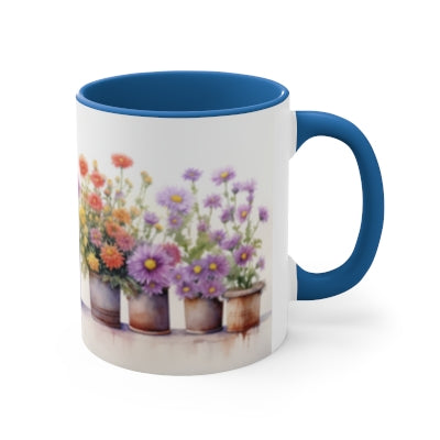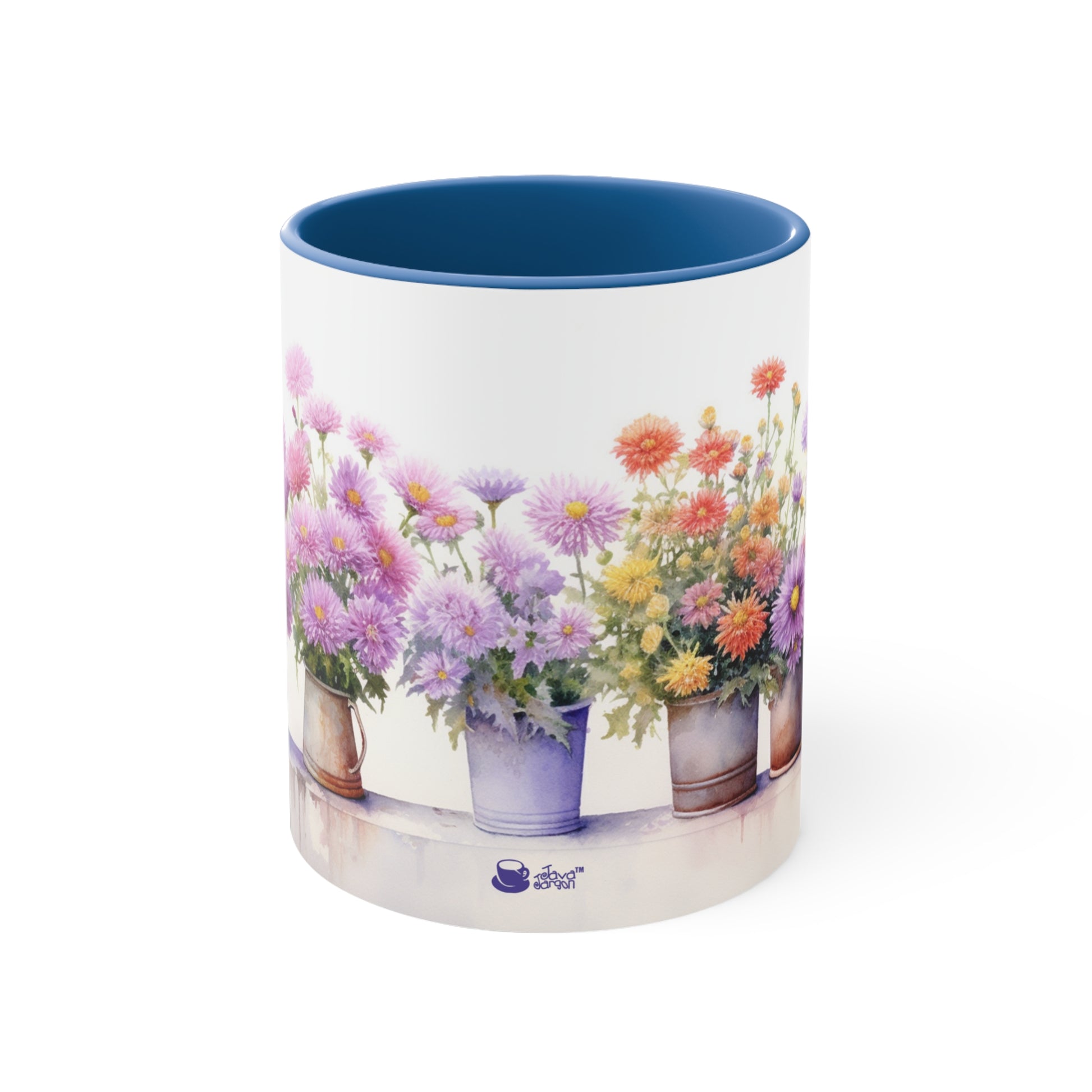 Introducing our charming Aster Plants Coffee Mug, the latest addition to our collectible flower series. Embrace the beauty of nature with this exquisite 11oz mug adorned with a delightful watercolor painting of Aster plants elegantly displayed in tin pots.