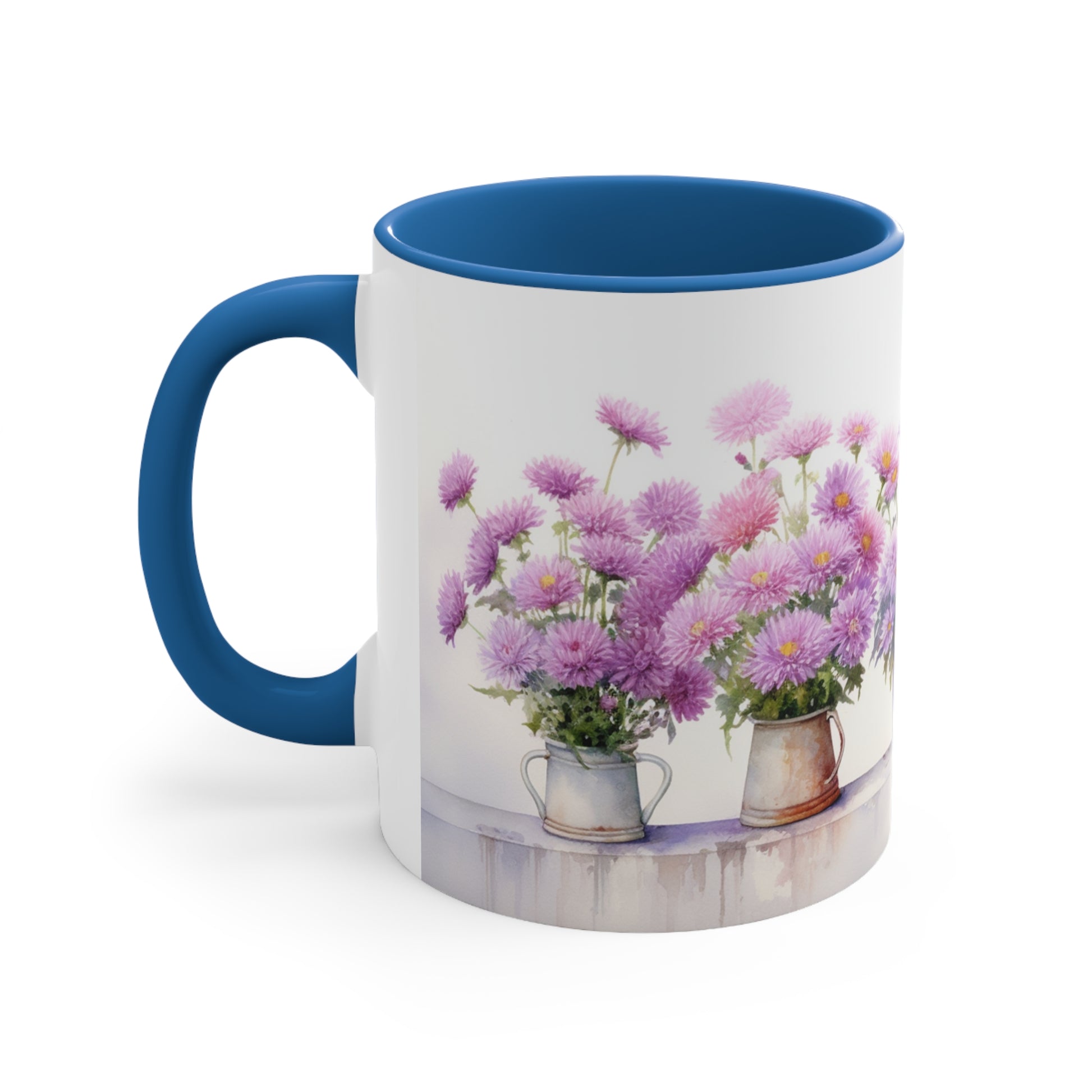 Aster Plant, Watercolored Flowers series, Accent Coffee Mug, 11oz