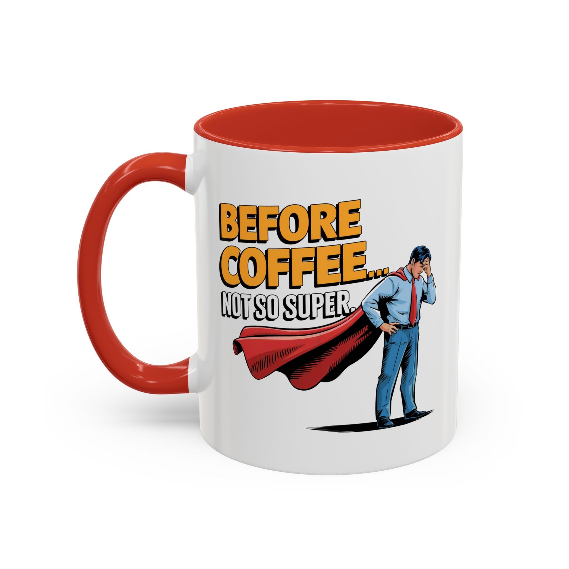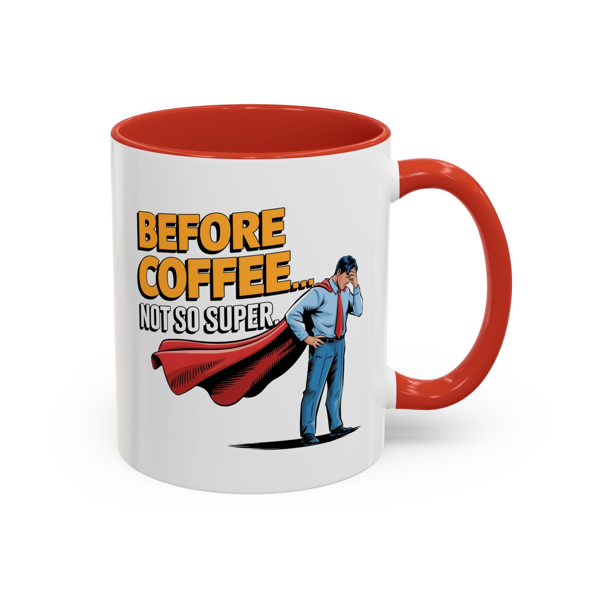 Unleash your inner office superhero with our "Before Coffee...Not So Super V2" mug! Featuring a man in a red cape, this funny mug is perfect for anyone who knows the struggle of mornings without coffee. A fun and quirky gift for him, guaranteed to bring a smile to his face (and a boost of caffeine to his day)!