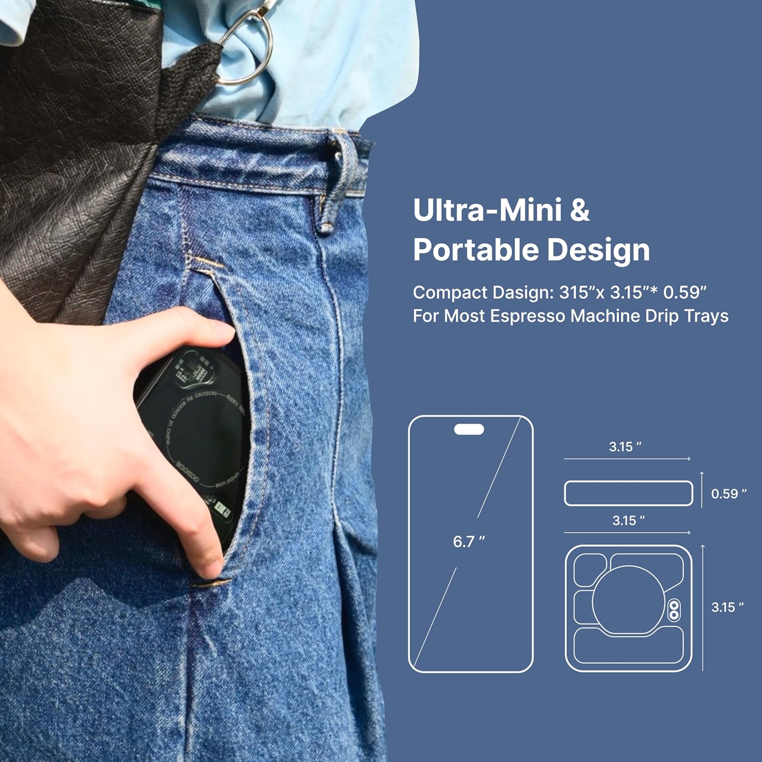 Its minimalist footprint fits easily on espresso machine drip trays or your brew bar, while the USB rechargeable battery keeps it ready for daily use.