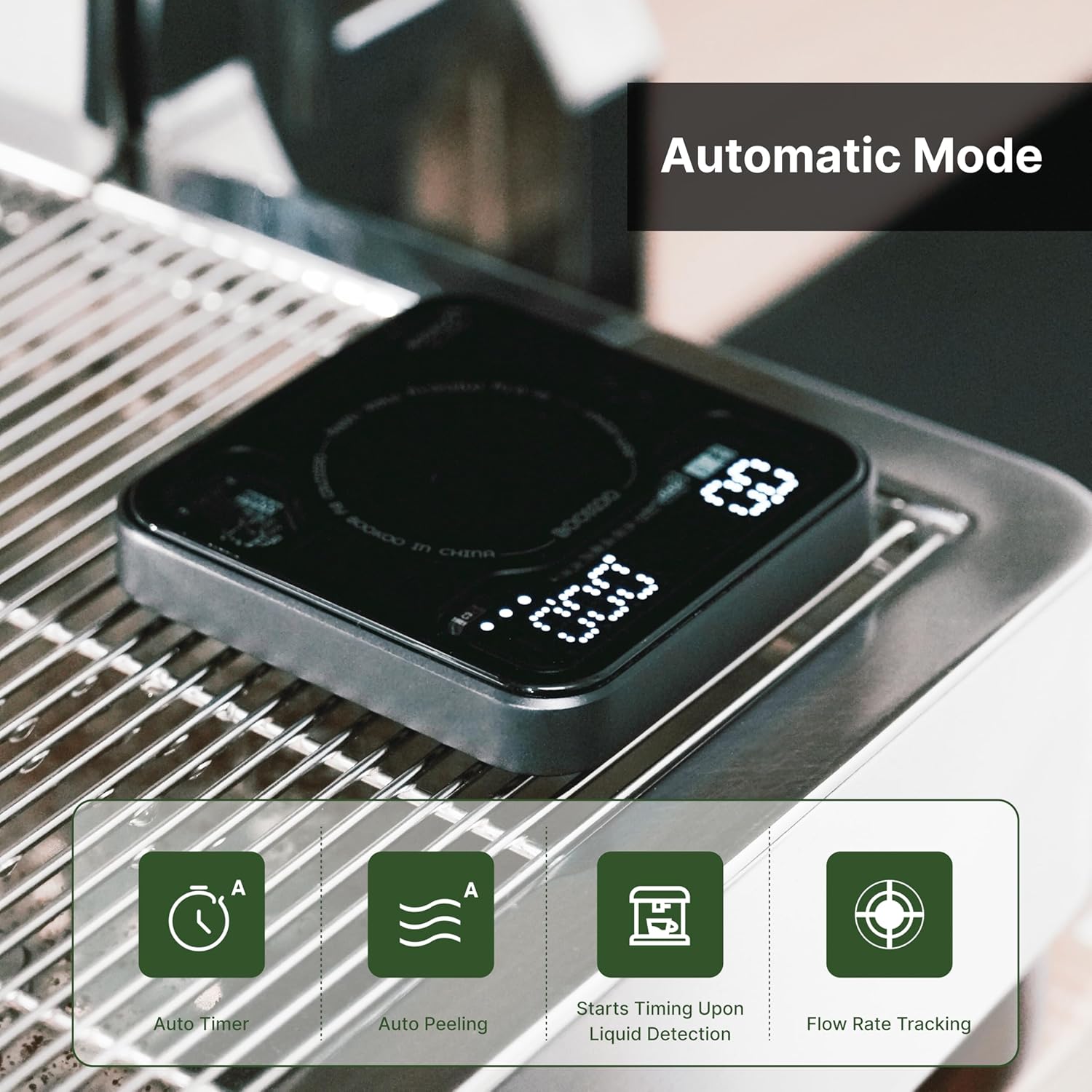 With Bluetooth connectivity and a companion coffee brewing app, you can log, review, and refine your recipes effortlessly. The auto mode starts timing as soon as it senses a change in weight—no button presses required. Perfect for espresso, pour-over, and even weighing beans pre-grind.