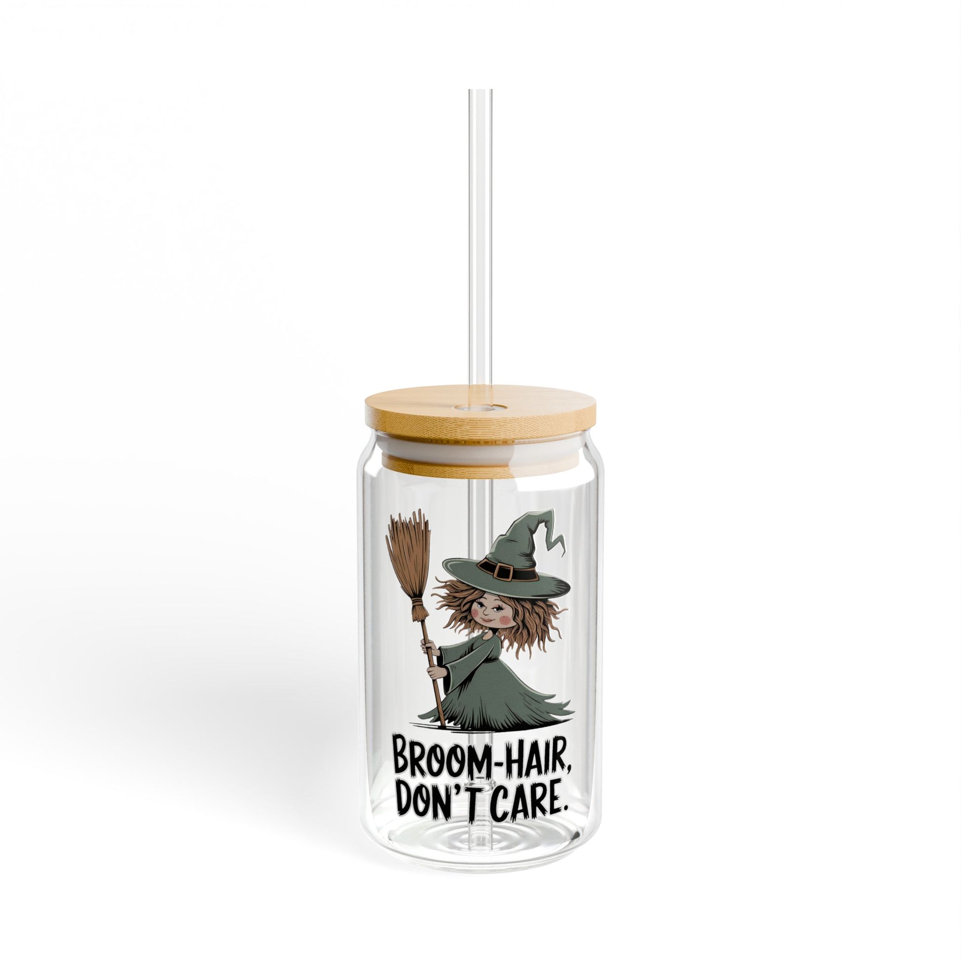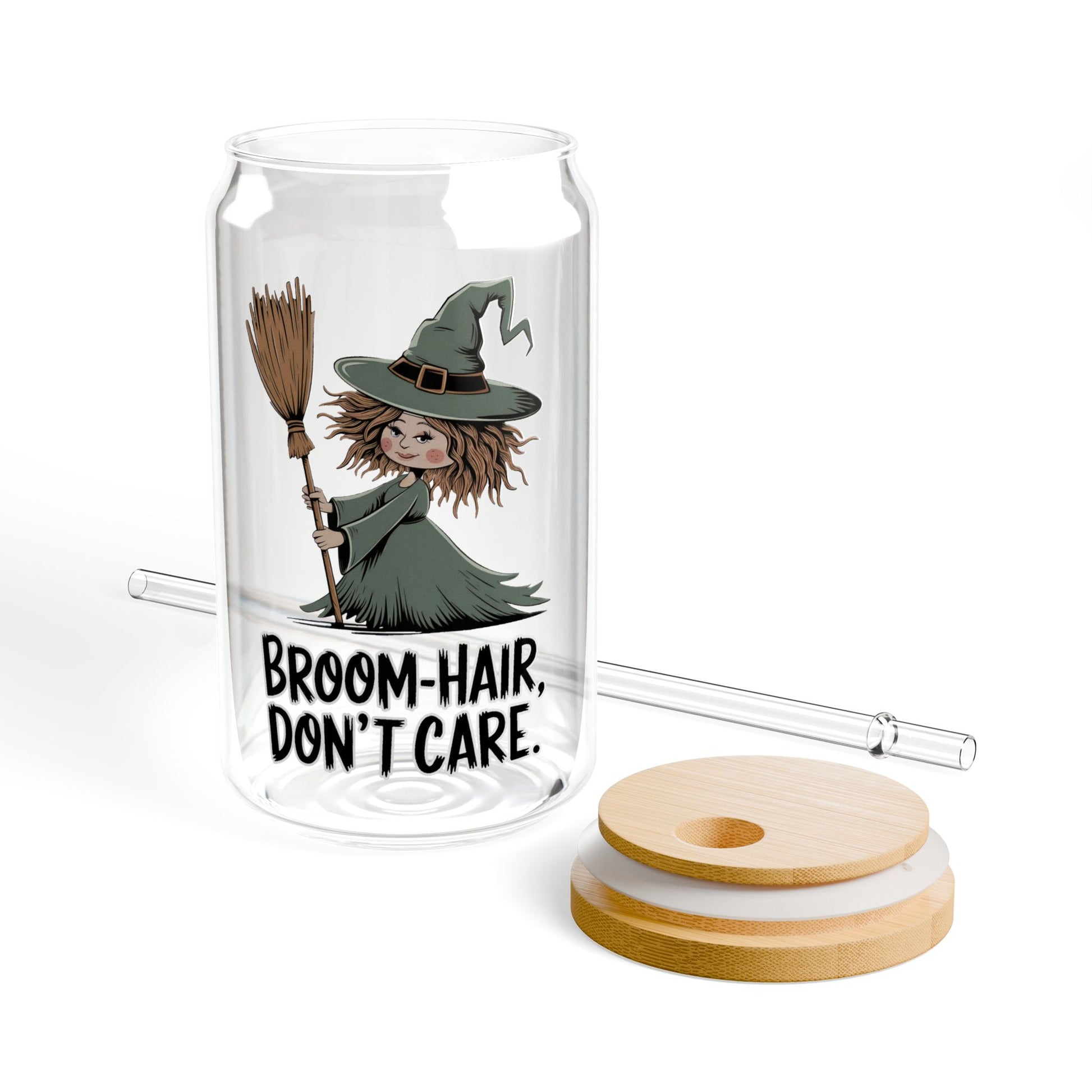 Broom Hair Don't Care Halloween Funny Witch Sipper Glass 16(oz)