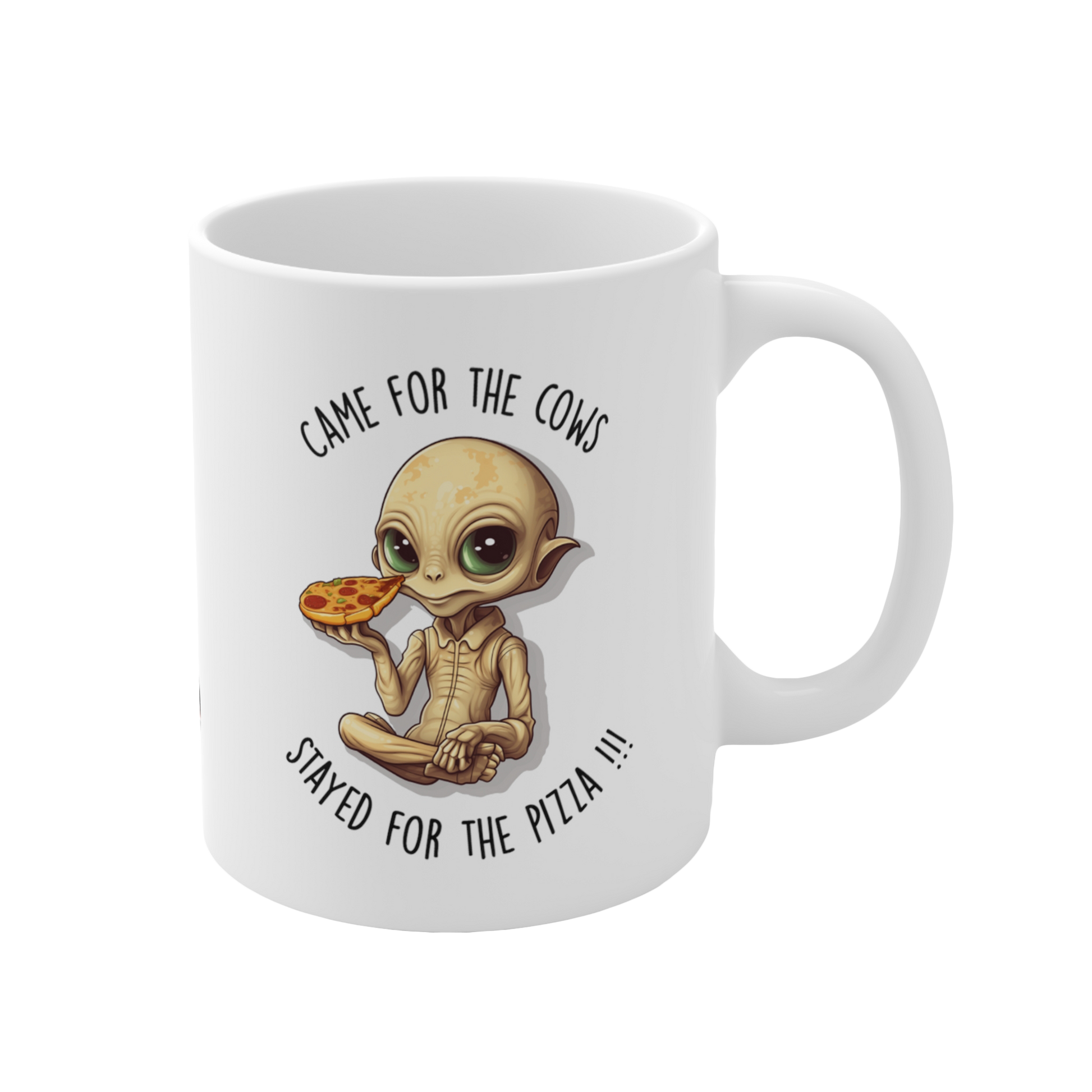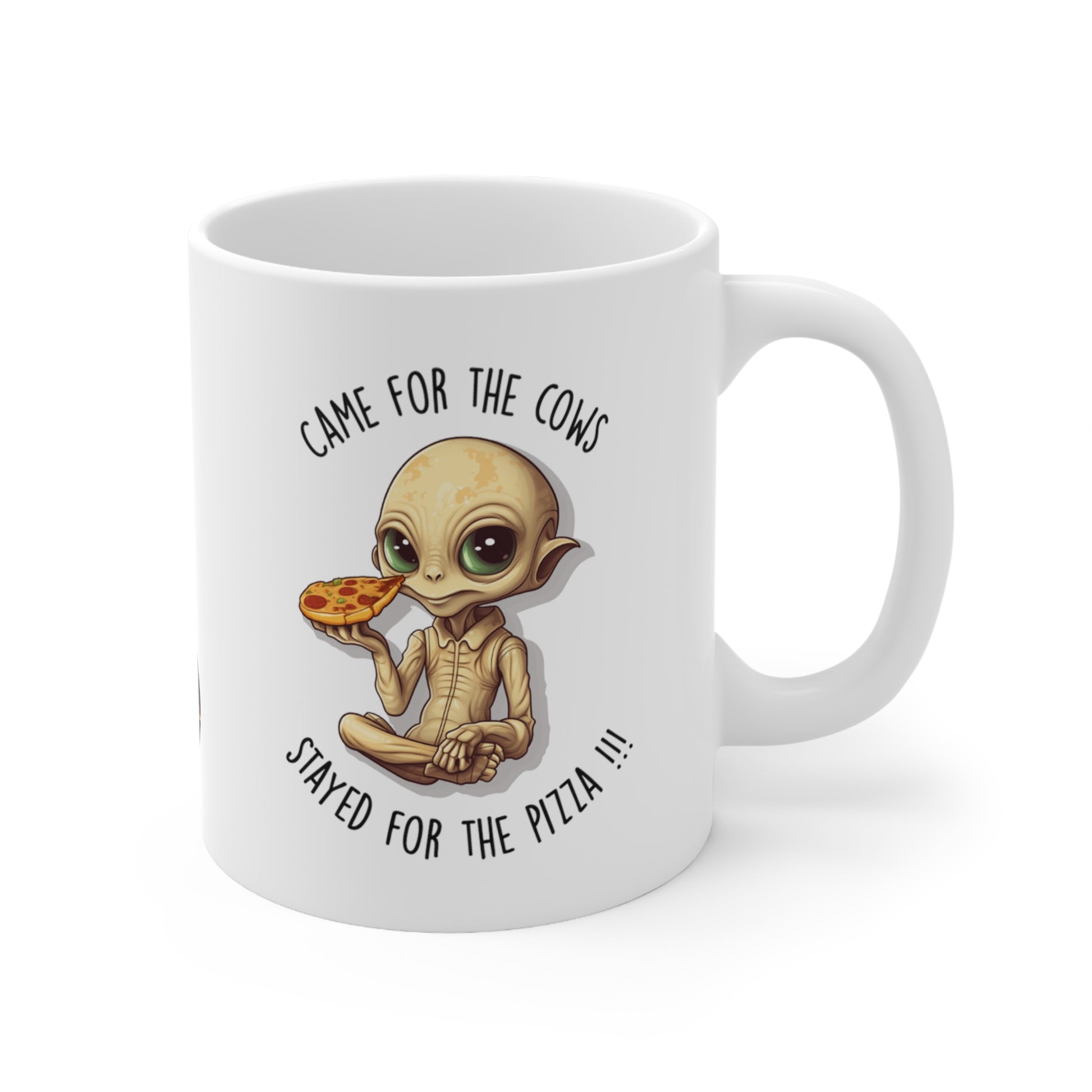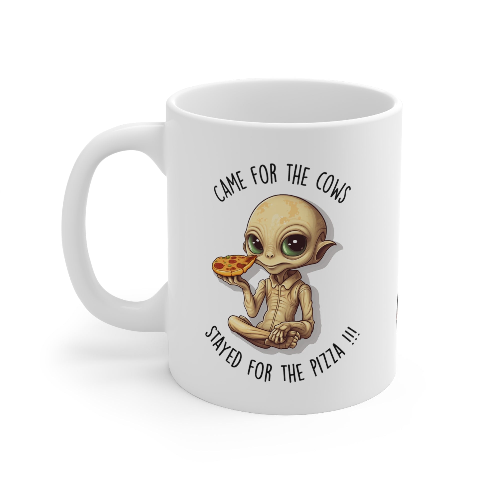 Came for the Cows™ Stayed for the Pizza | Alien Coffee Mug Gift