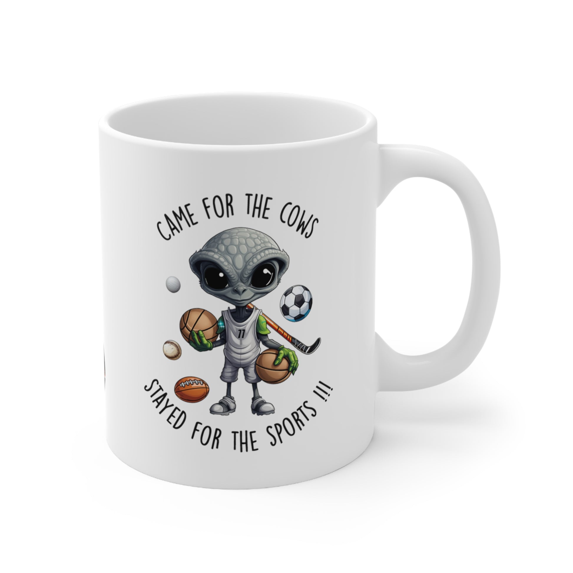 Came for the Cows™ Stayed for The Sports | Little Alien Series Mug 11(oz)