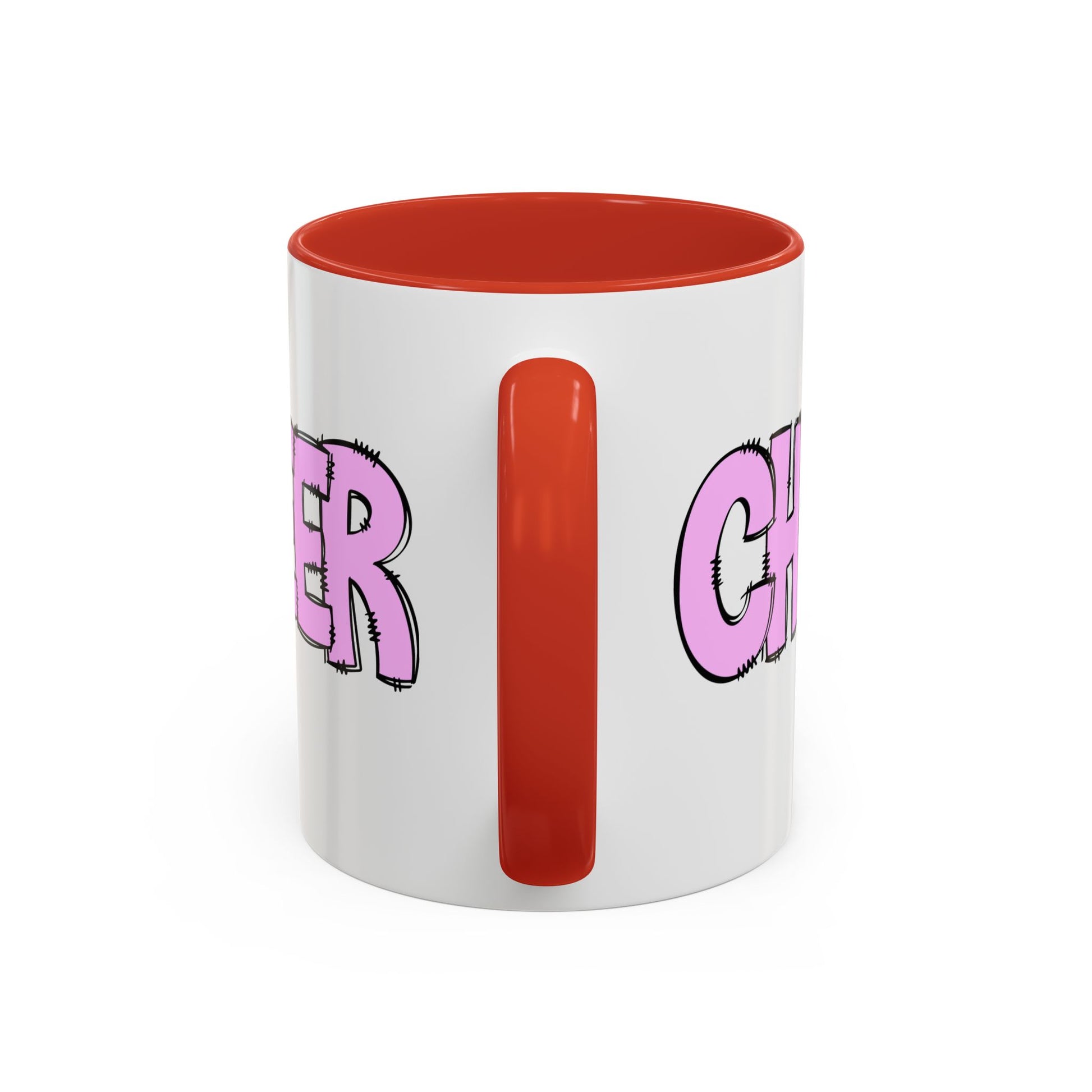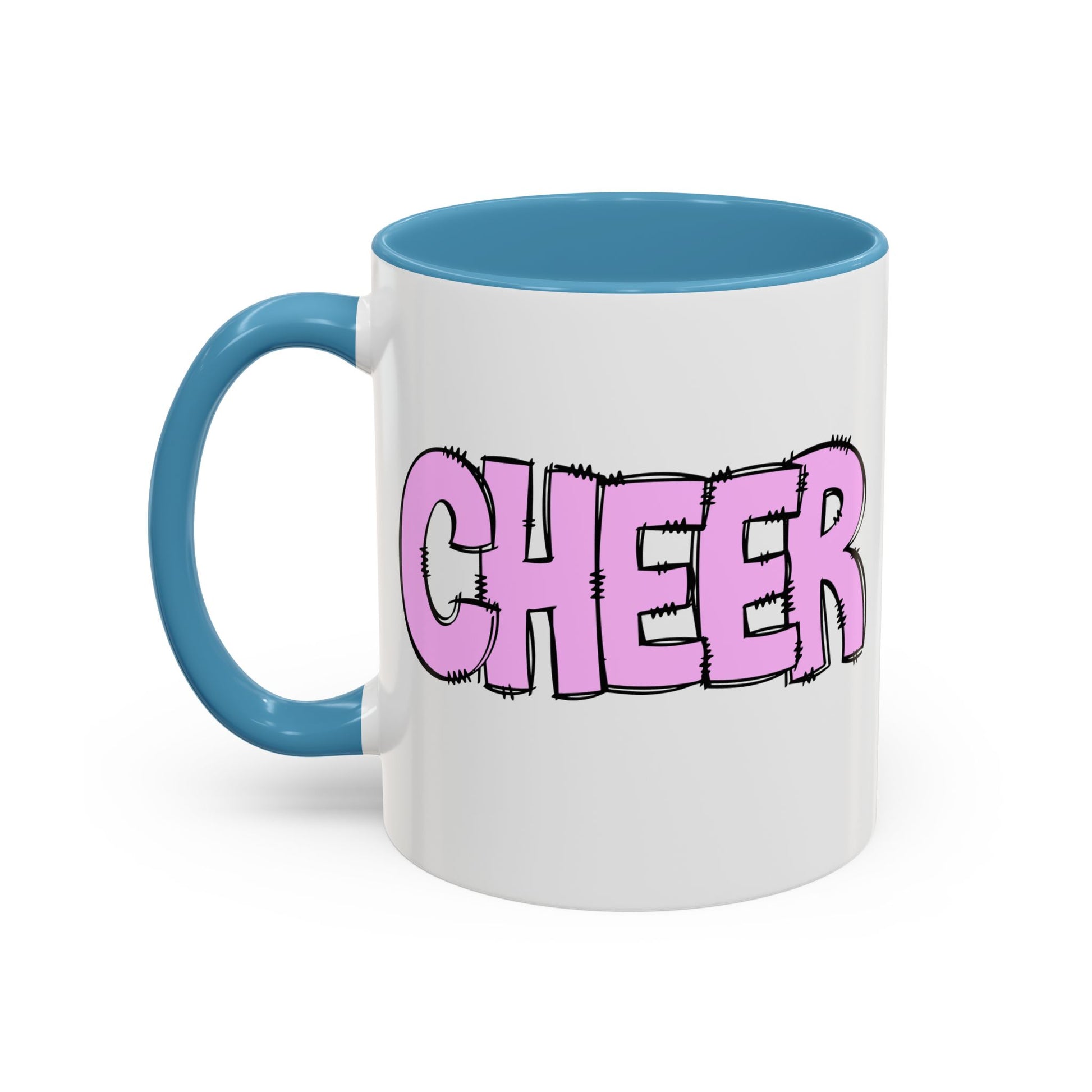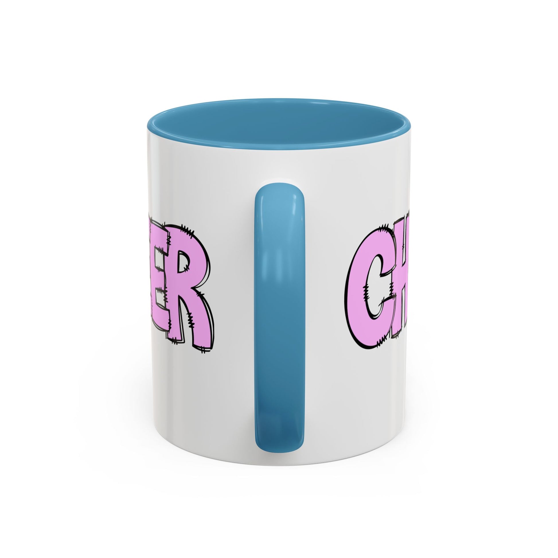 Add a playful touch to your morning routine with this "Cheer" mug, featuring a fun and whimsical light blue Doodle art design. Choose between a red hand and interior or a light blue handle and interior to match your style. This 11oz mug is perfect for those who love vibrant designs and want to start their day with a smile. A great gift for anyone who embodies cheerfulness and creativity!