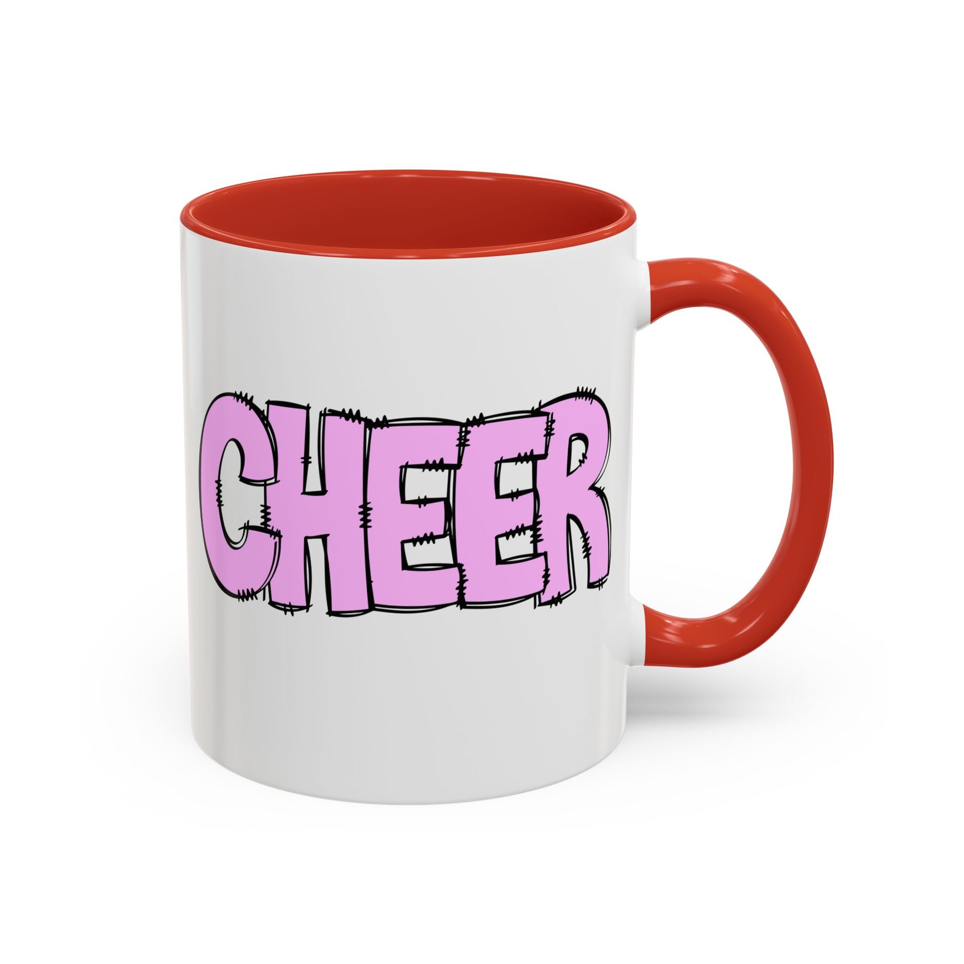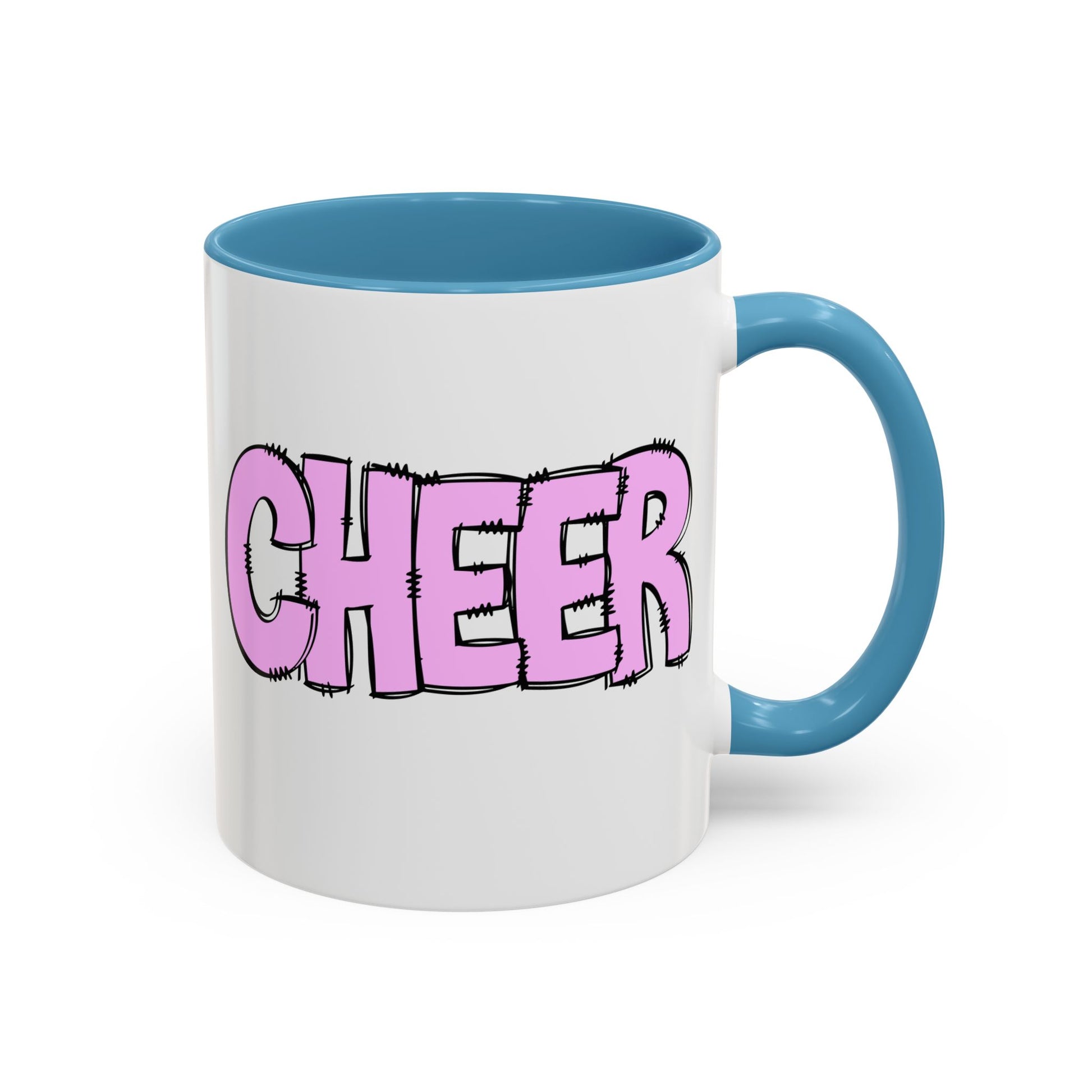 Cheer Doodle Art Mug - Light Blue or Red Accent - 11oz