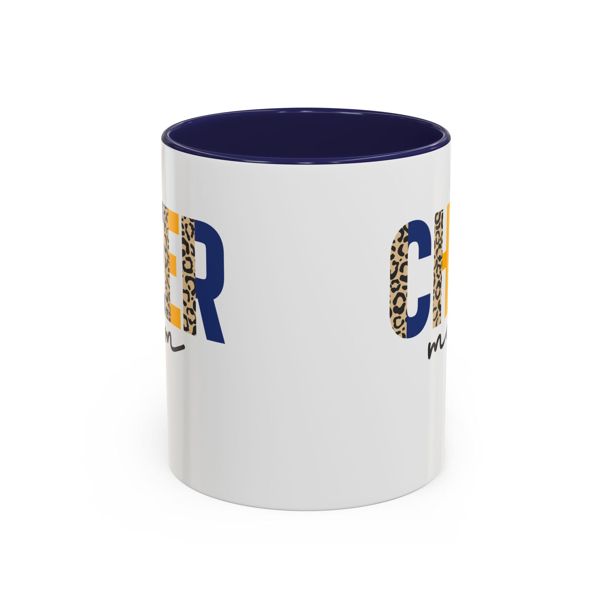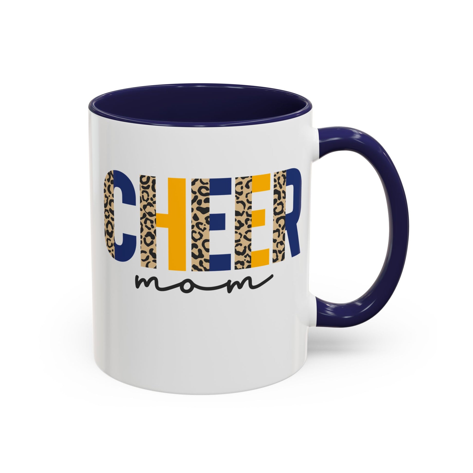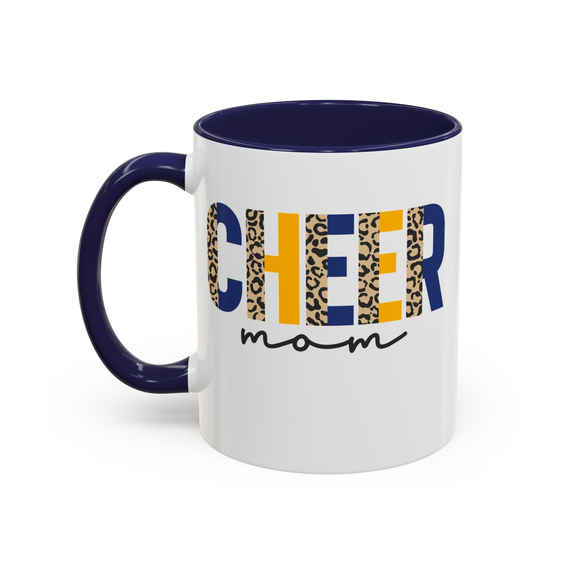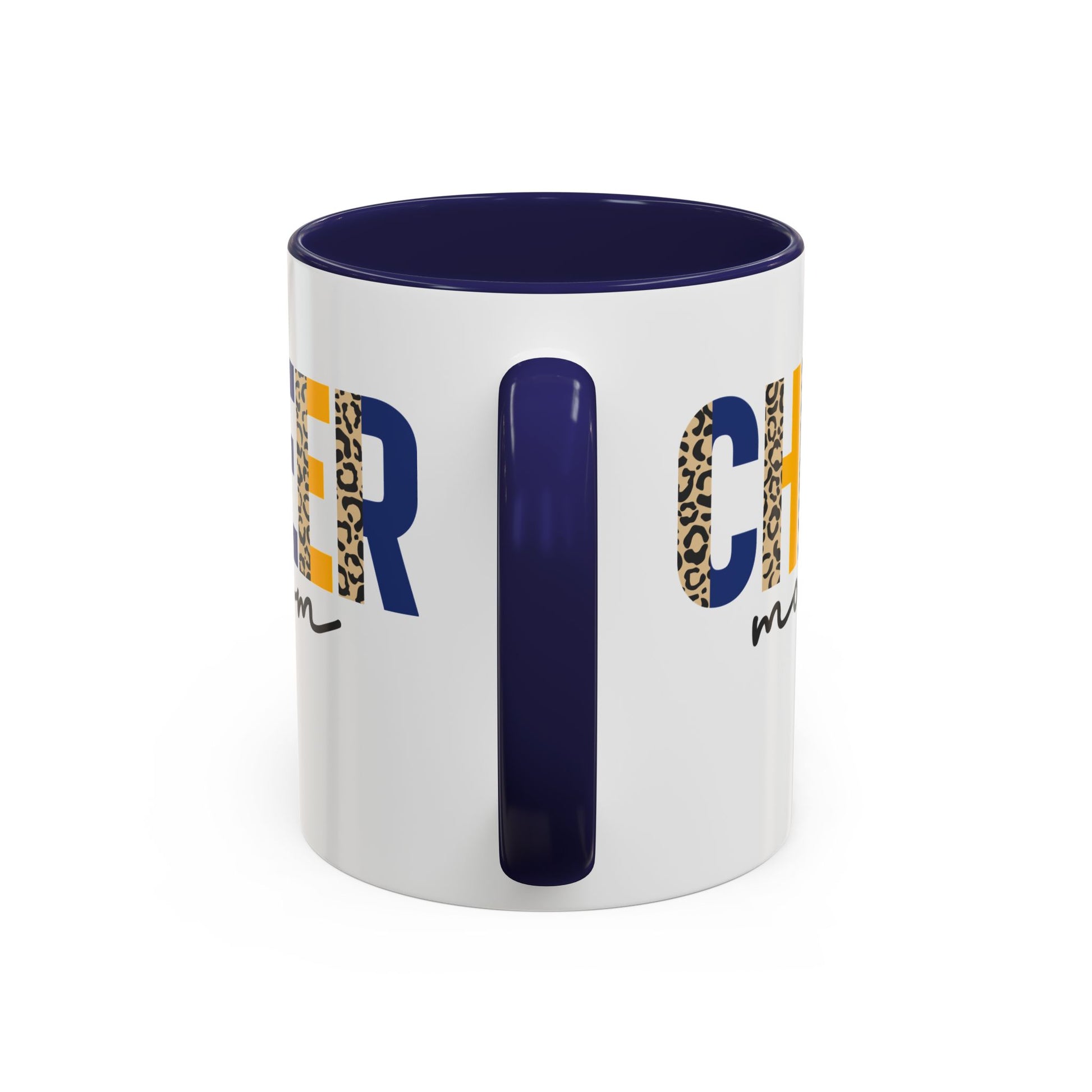 Cheer Mom Mug | Leopard Print Cheer Letters & Navy Handle | 11oz Ceramic