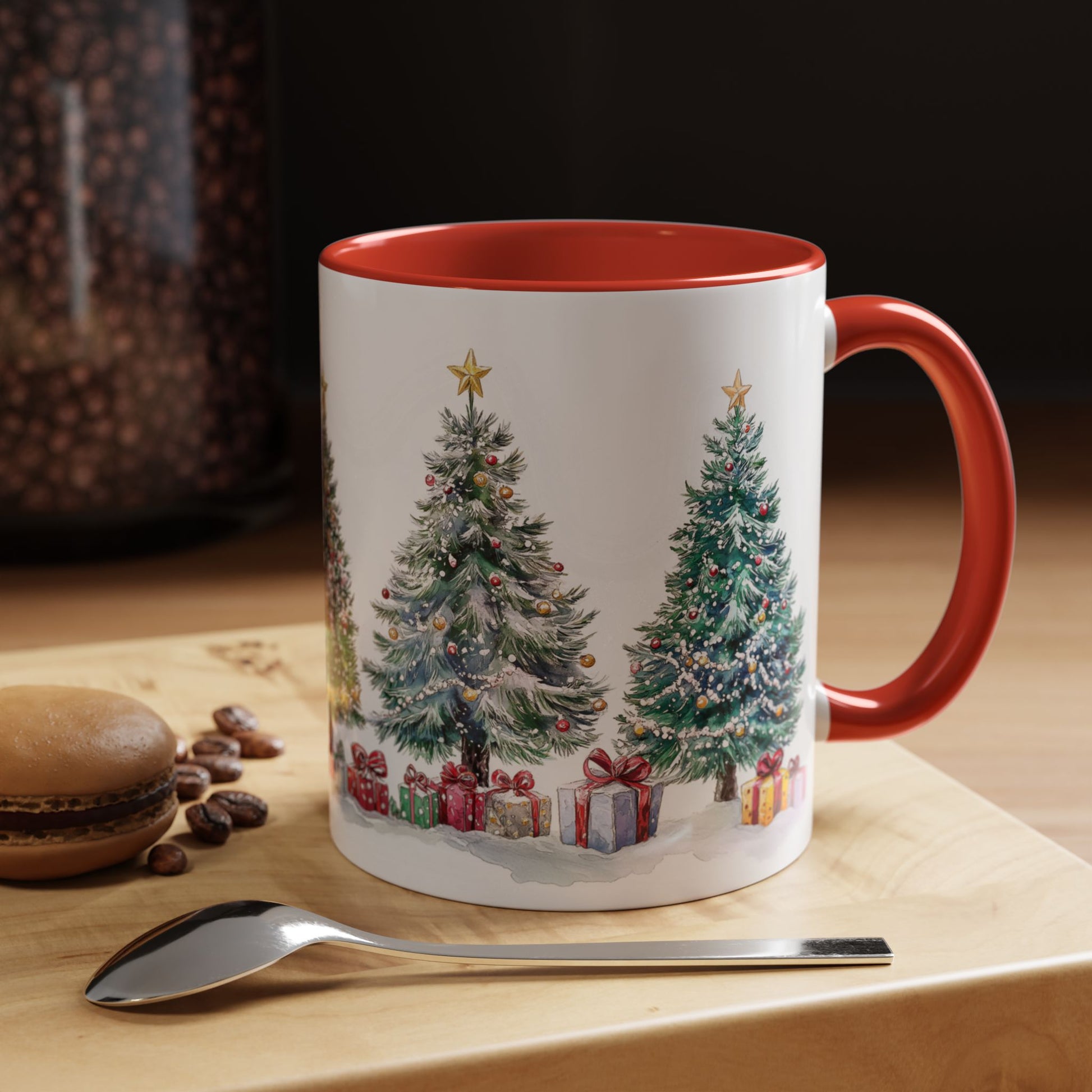 Christmas Trees & Presents Mug Watercolor – Festive Holiday Coffee Cup (11oz)