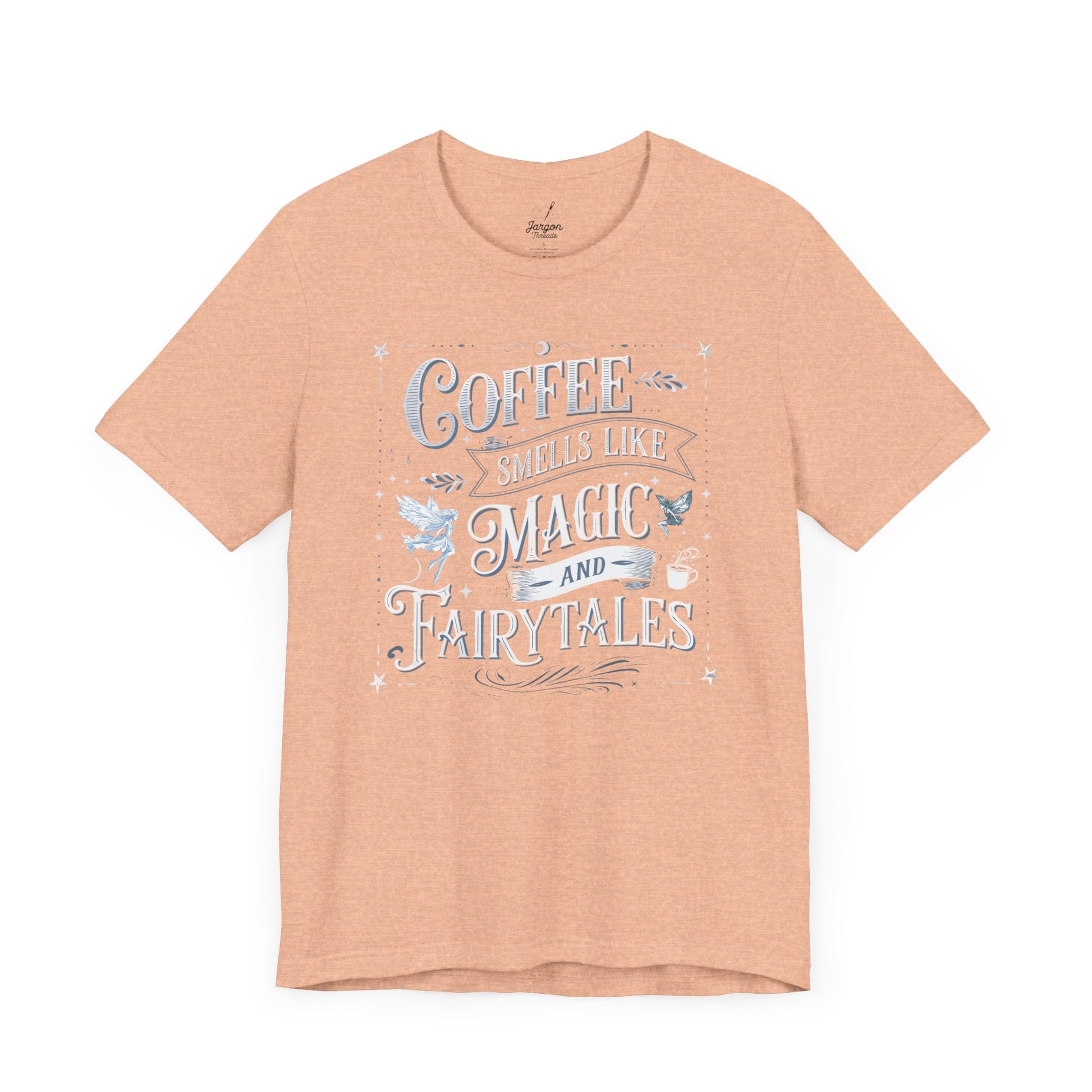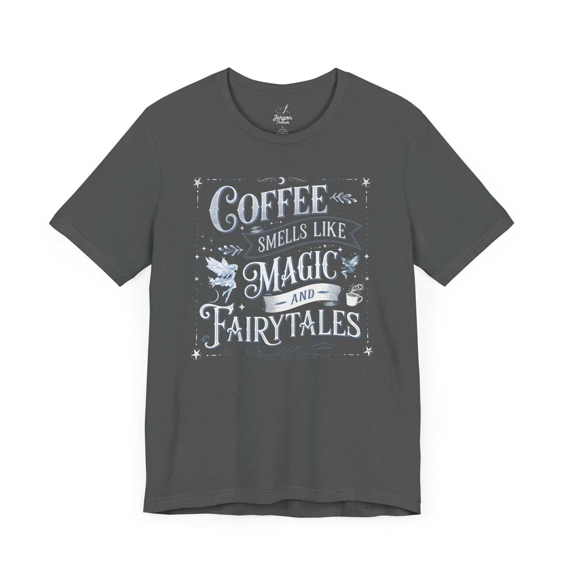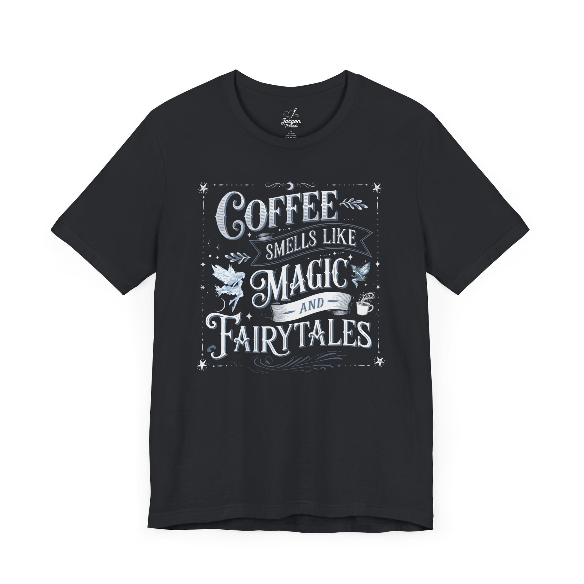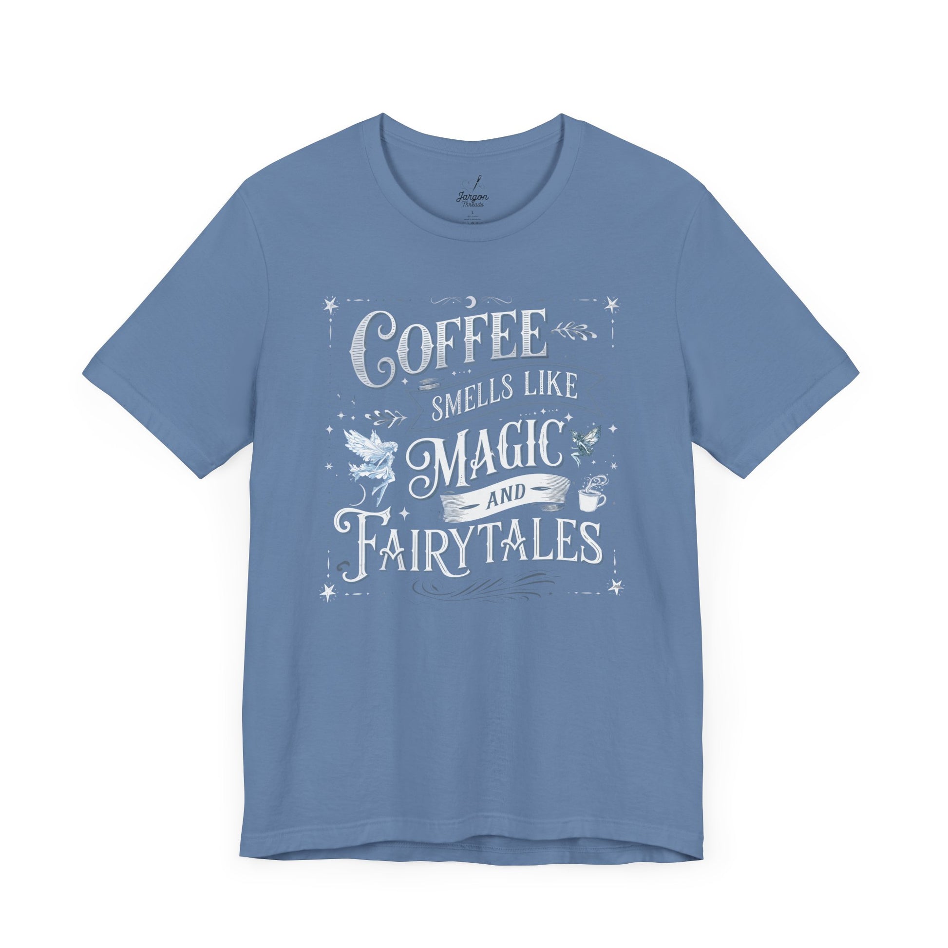 Coffee Smells Like Magic and Fairytales Shirt | Whimsical Coffee Tee with Stars and Fairies for Dreamers and Caffeine Lovers