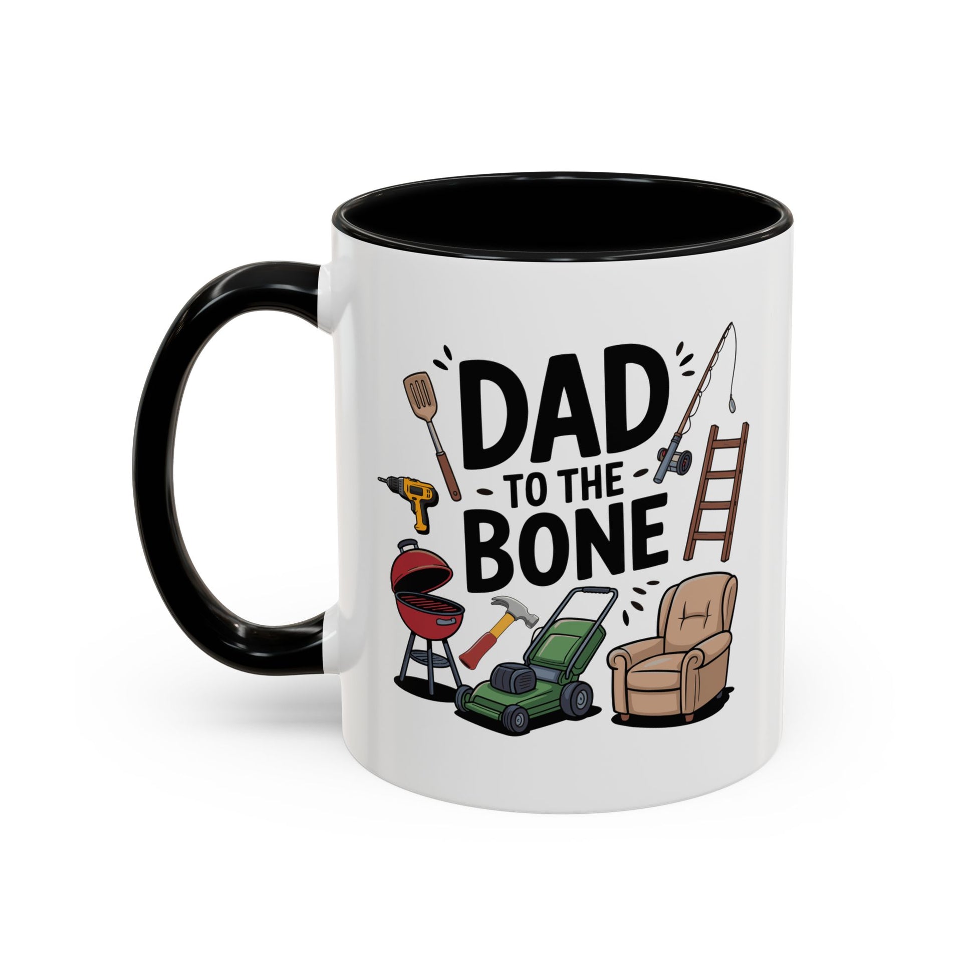 Celebrate the ultimate do-it-all dad with our “Dad to the Bone” mug, featuring classic dad icons like a lawnmower, drill, ladder, and more. From handyman vibes to lazy recliner days, this mug is a tribute to everything that makes Dad legendary.
