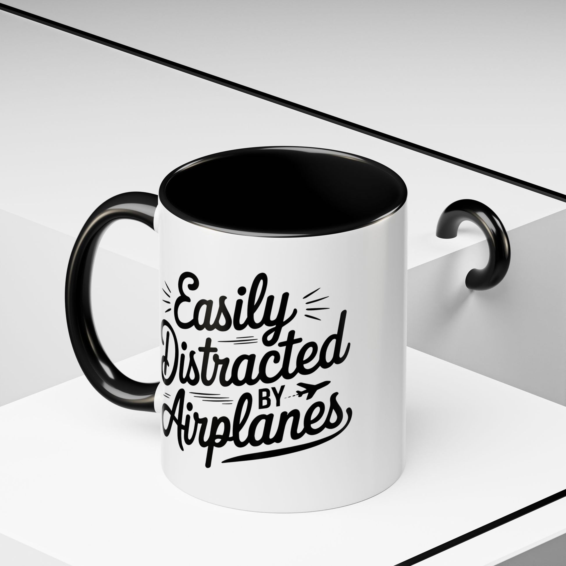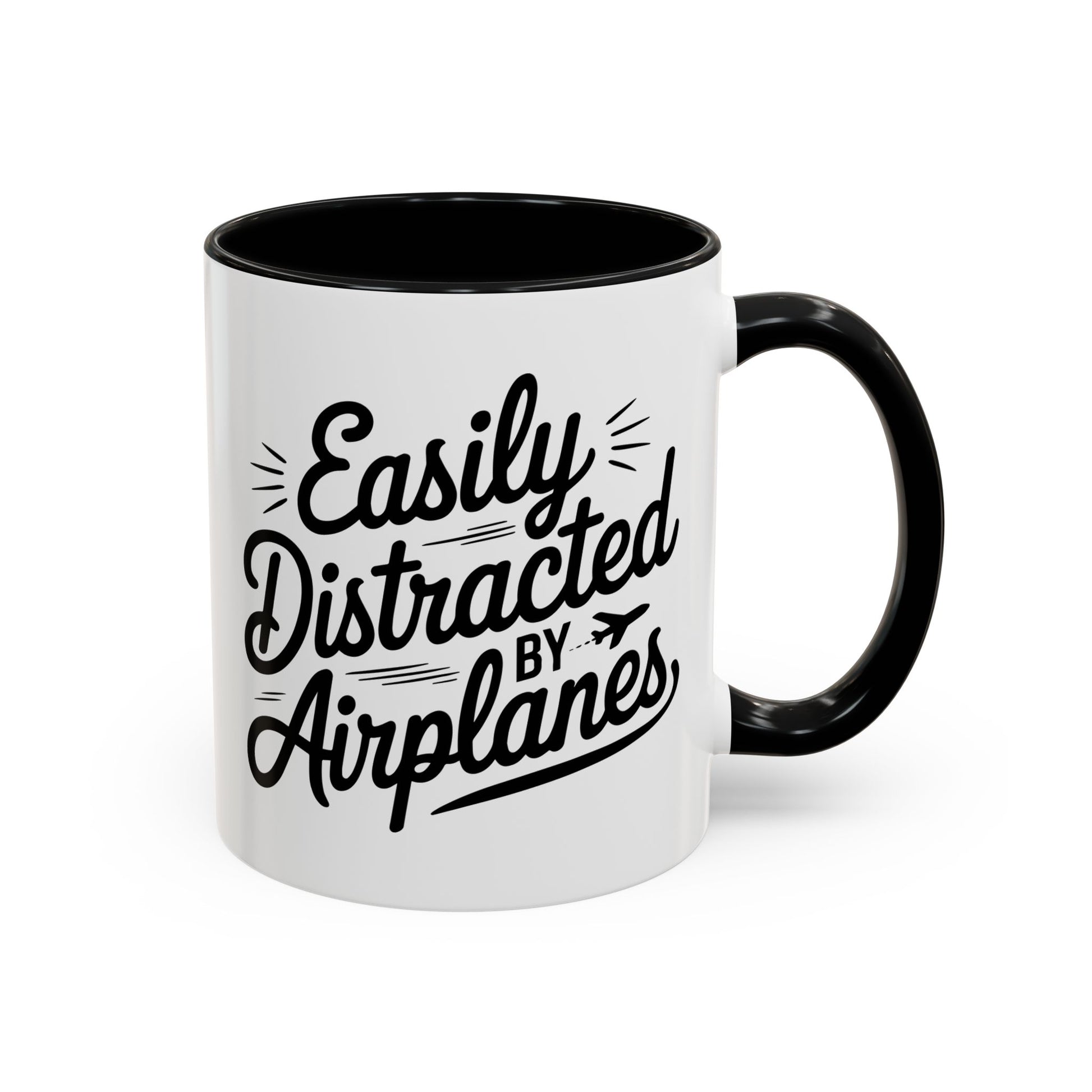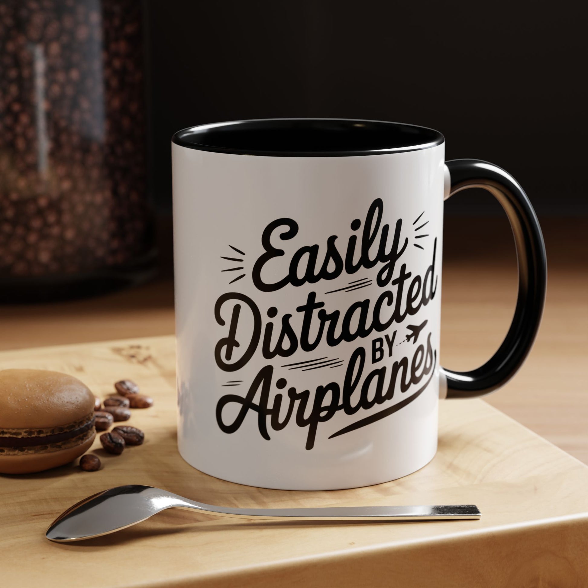 Easily Distracted By Airplanes Coffee Mug, Fun Travel Mug, Gift for Aviation Lovers, Quirky Office Mug, Unique Airplane Gift