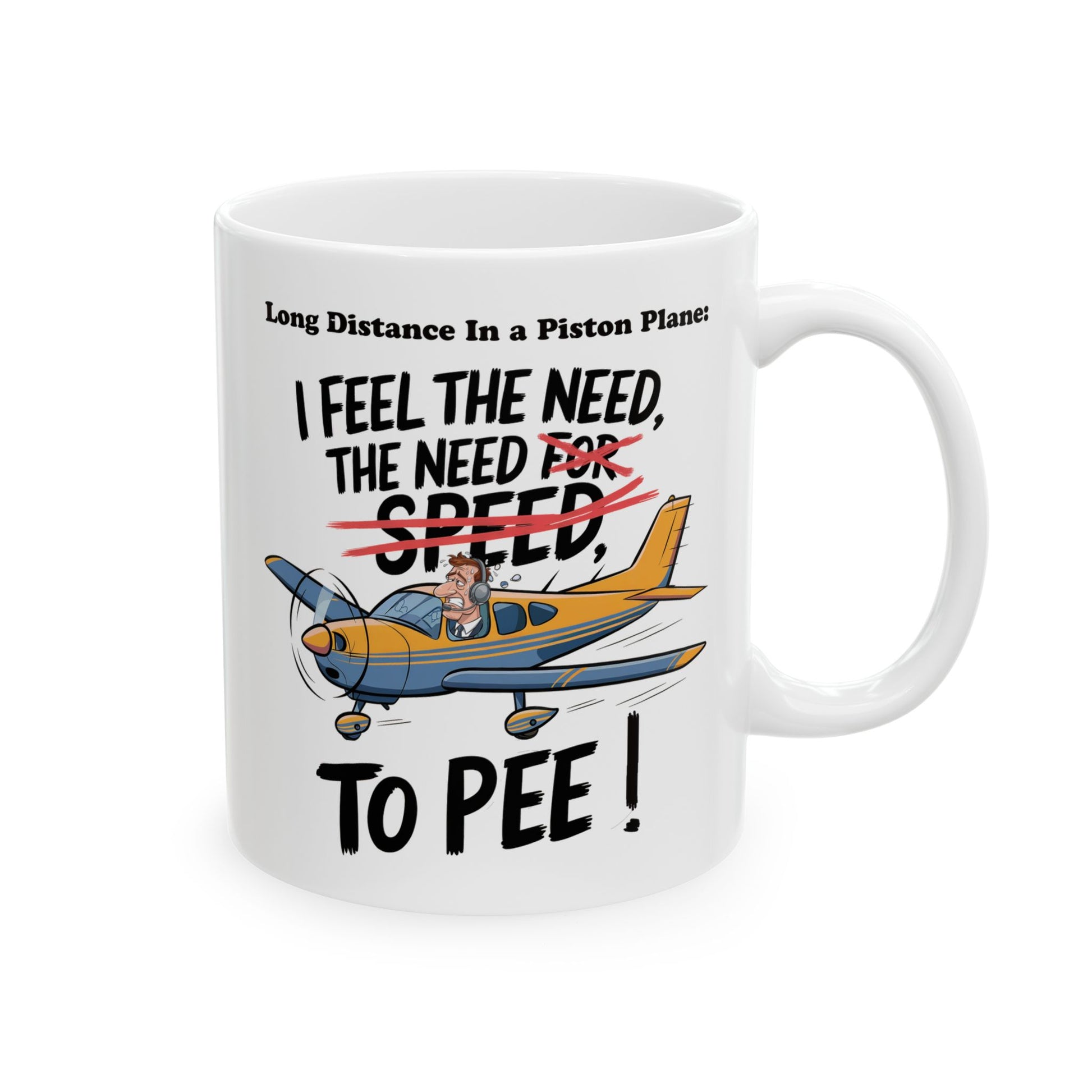 Funny Aviation Quote Ceramic Mug - Distressed Pilot Humor - I Feel the Need to Pee, Top Gun - 11oz, 15oz, Gift for Pilots, Airplane