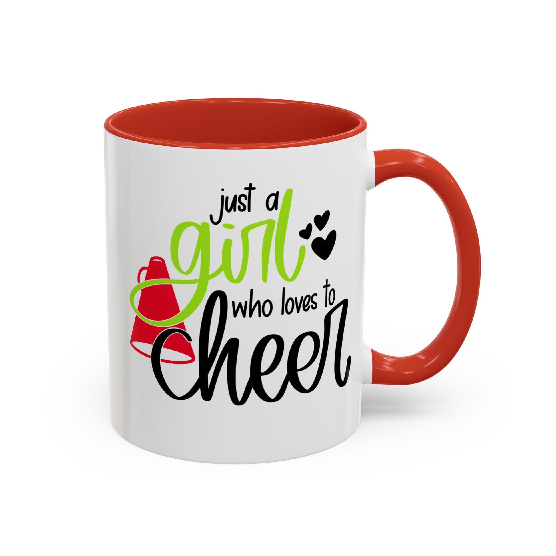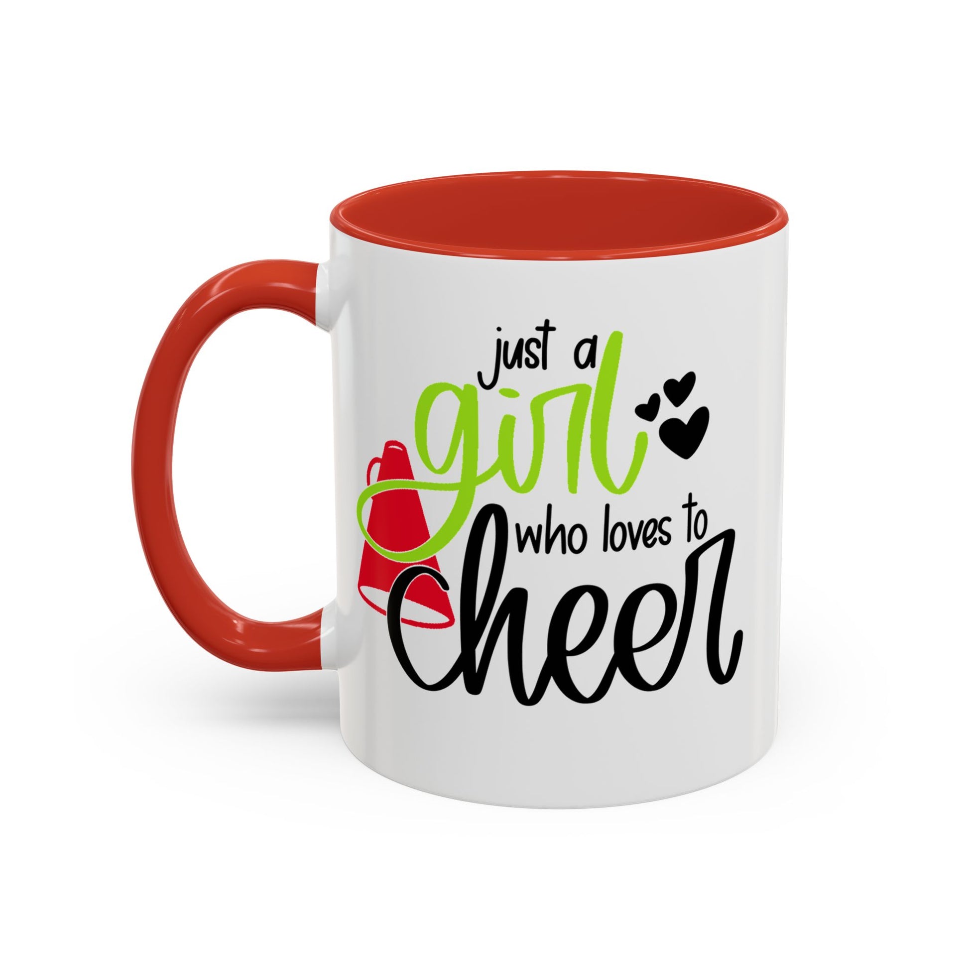 Just a Girl Who Loves to Cheer Mug | Cursive Font with Megaphone | 11oz Cheer Mug