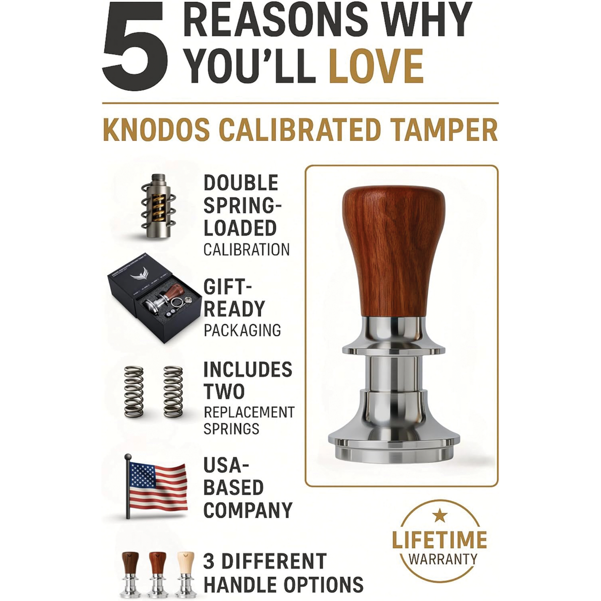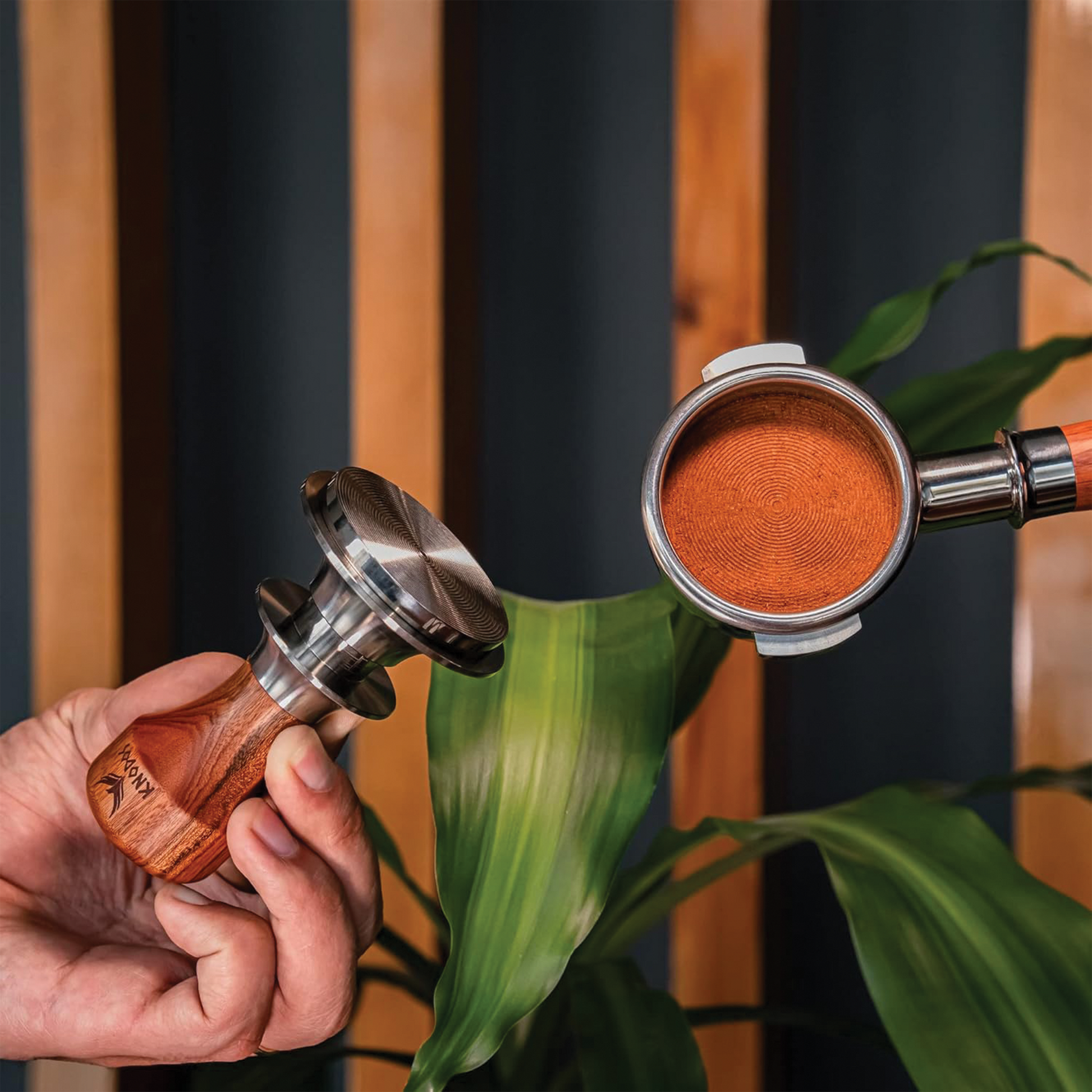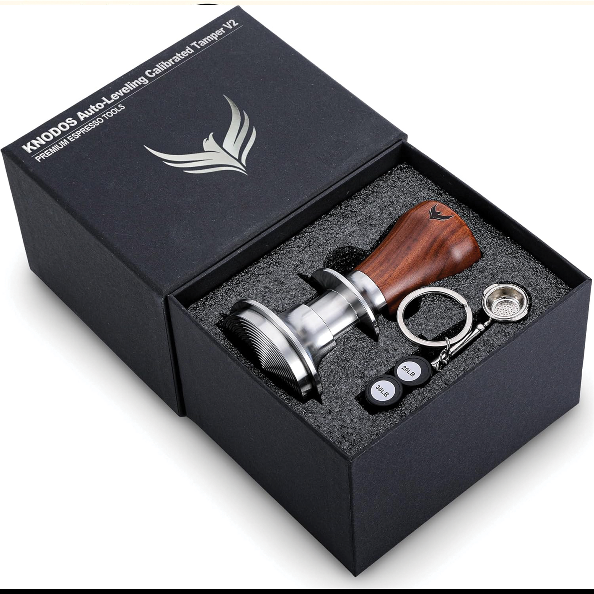 Upgrade your tamping game with the KNODOS V2 58mm Rosewood Tamper — a self-leveling, spring-loaded tool that brings precision and elegance to your espresso workflow. Designed for consistency, it features a calibrated double-spring mechanism that ensures uniform pressure every time.