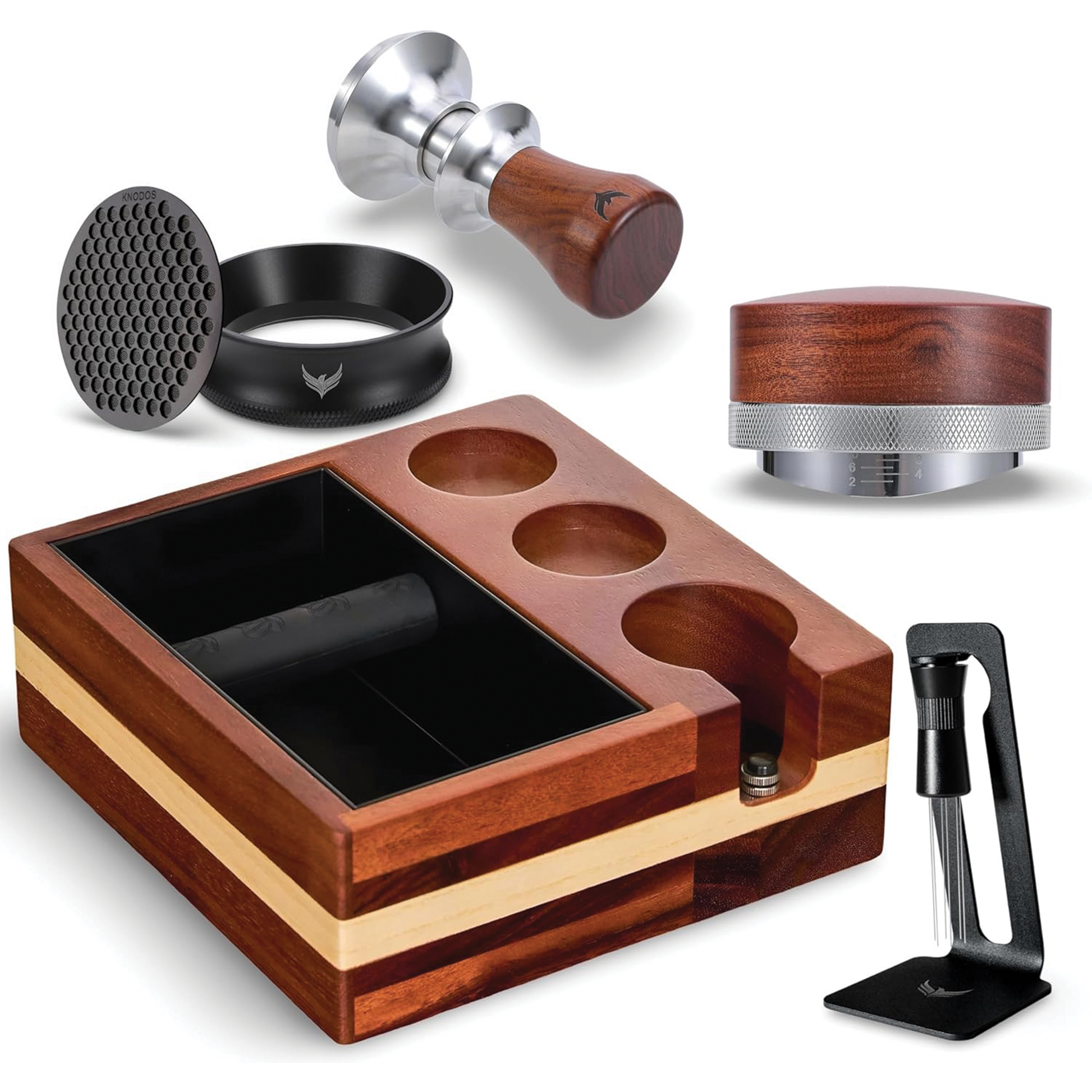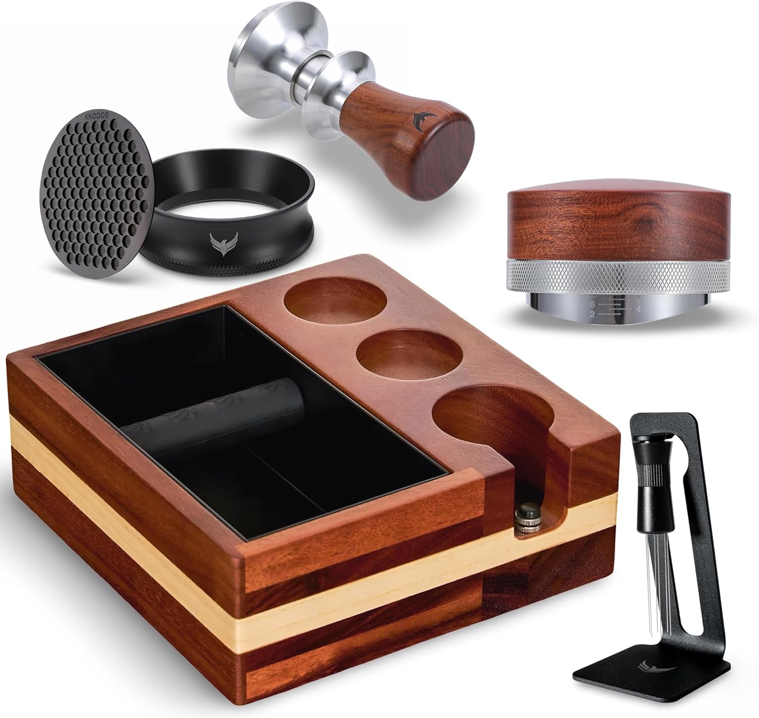 Walnut Tamping Station with Integrated Knock Box: Offers a stylish and functional workspace for your espresso preparation.Fakespot - Love Everything You BuyAmazon