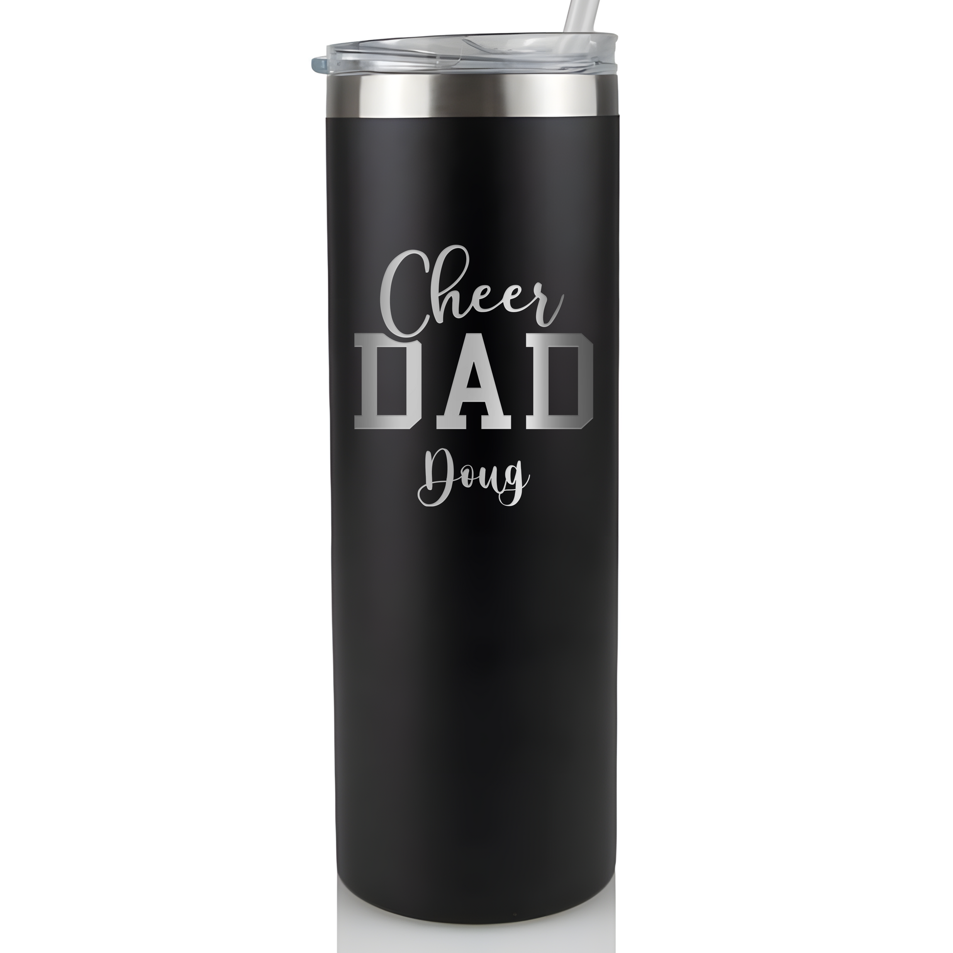 Show off your cheer pride in style with our personalized laser engraved 20oz tumbler, available in four distinct designs—Cheer, Cheer Mom, Cheer Dad, and Cheer Coach—each featuring a unique, professionally laser-etched graphic.