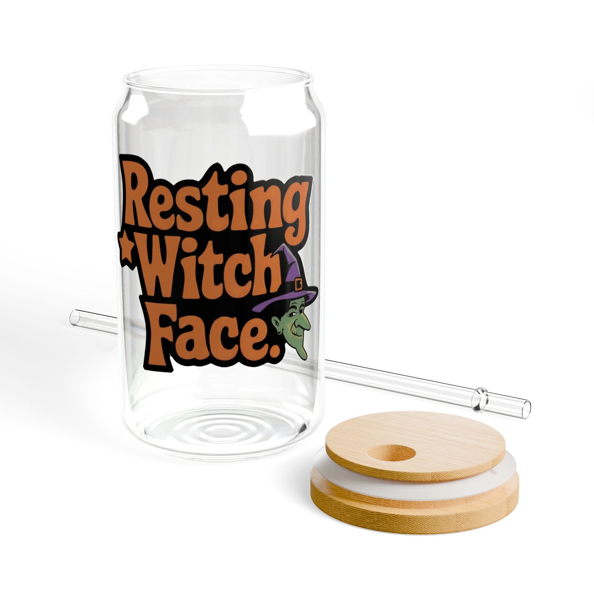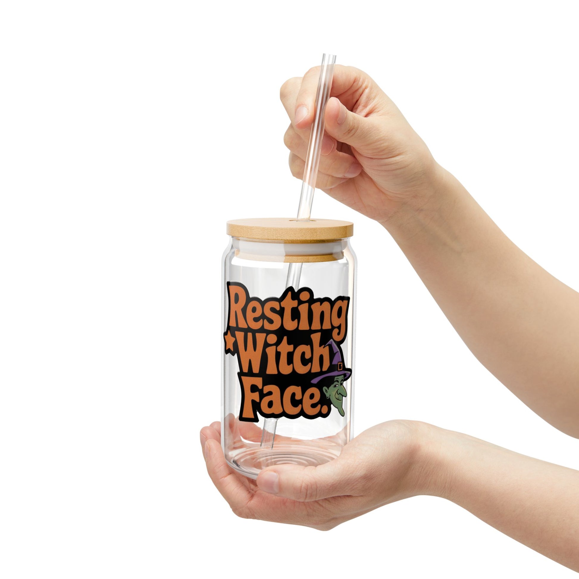 Resting Witch Face Halloween Sipper Glass – 16oz Spooky Drinkware