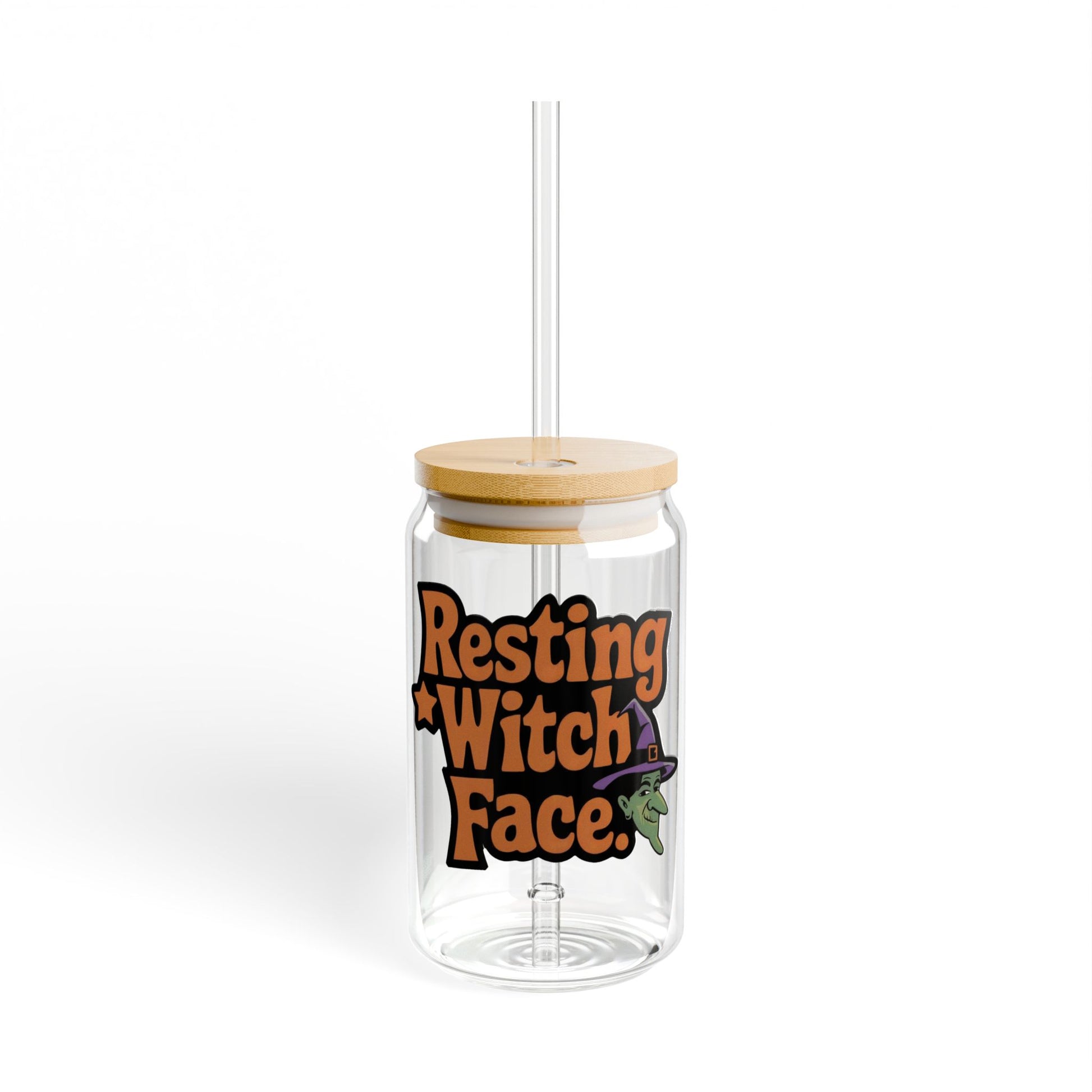 Embrace the playful spirit of Halloween with our Resting Witch Face Sipper Glass! This 16oz glass features bold lettering proclaiming "Resting Witch Face," cleverly implying a well-known phrase with a fun, witchy twist, complemented by the charming profile of a classic witch wearing a pointed hat.