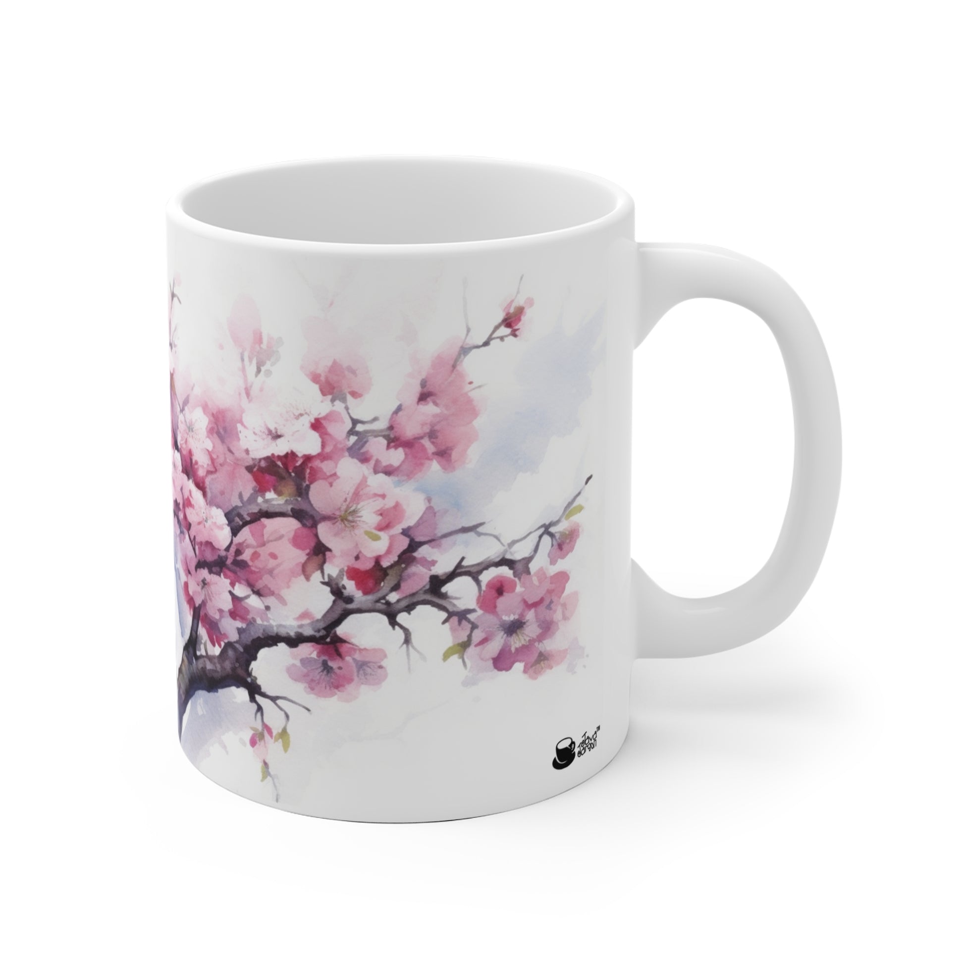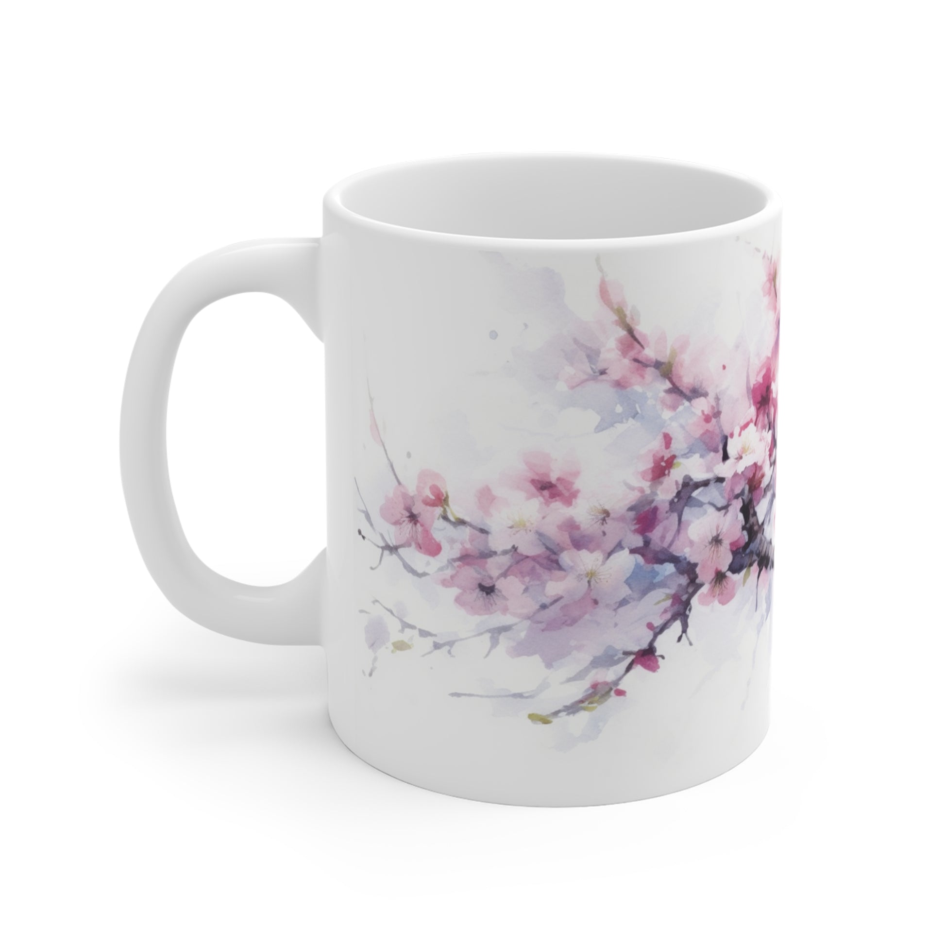 Sakura Serenity, Watercolored Japanese Cherry Blossom Collectible floral inspired 11oz Coffee mug.