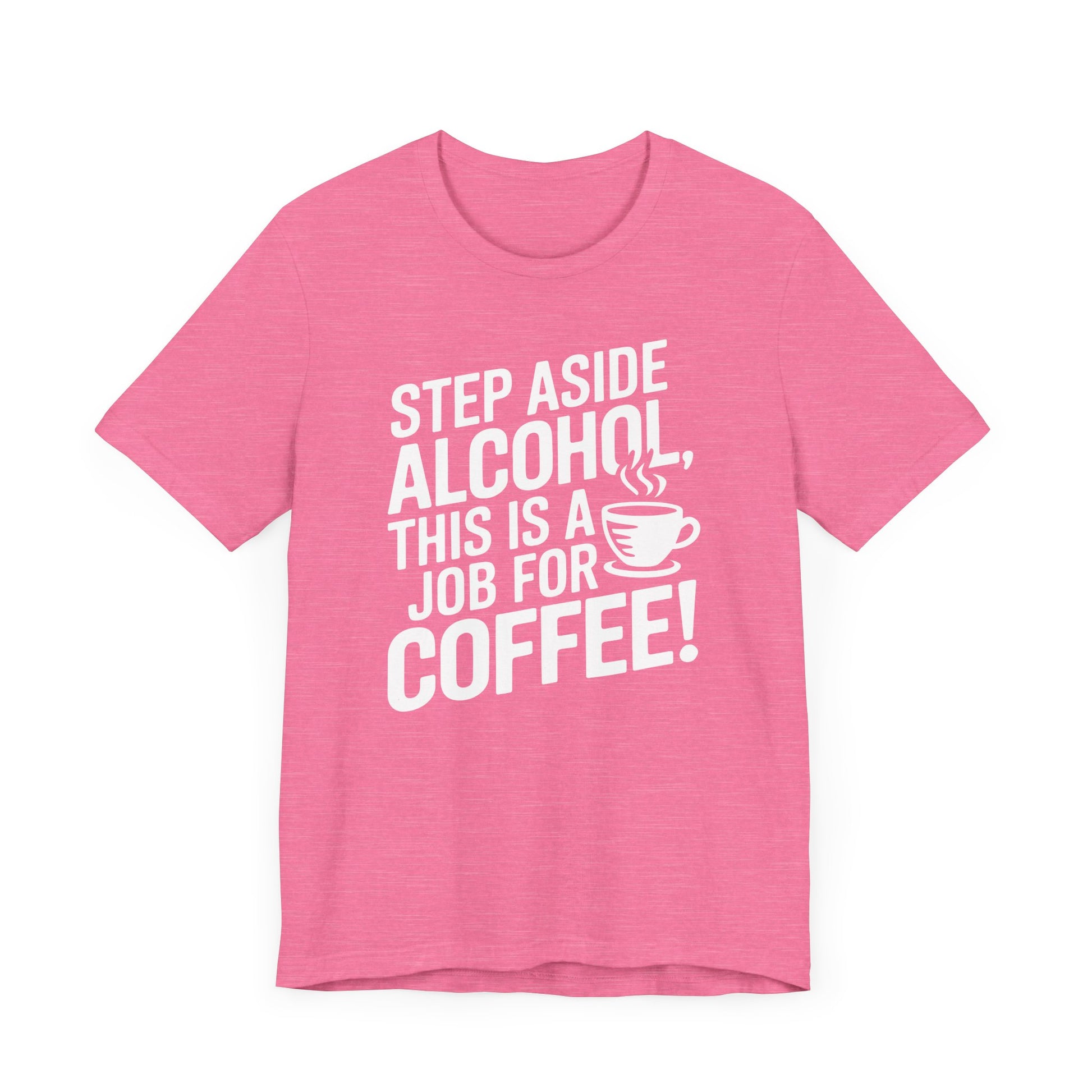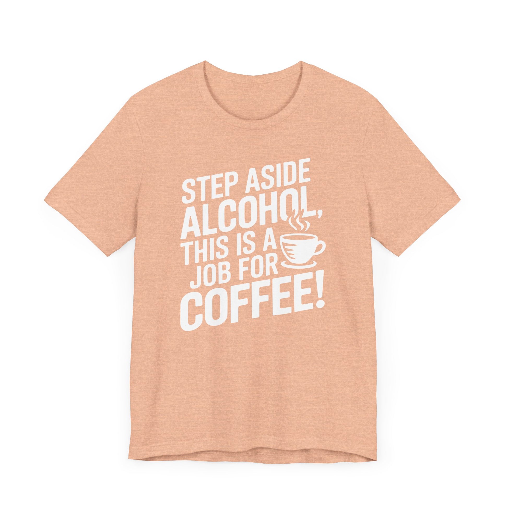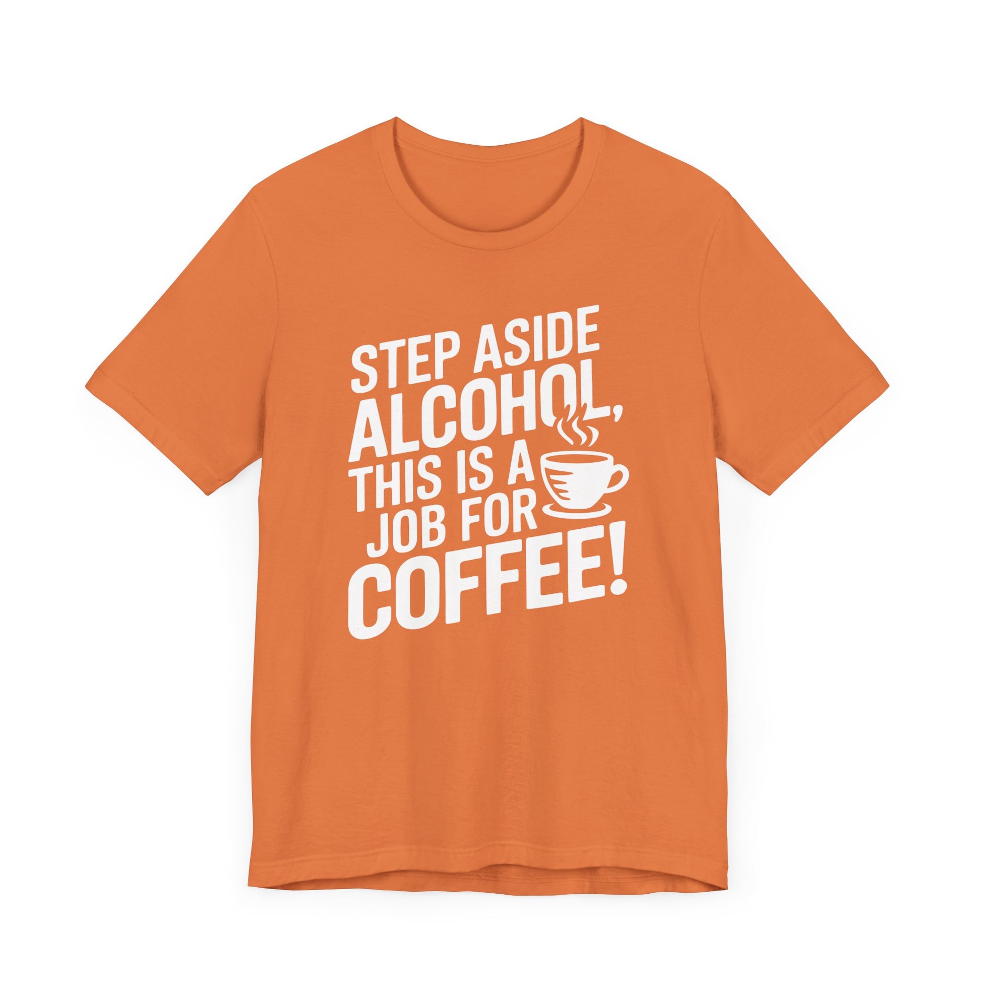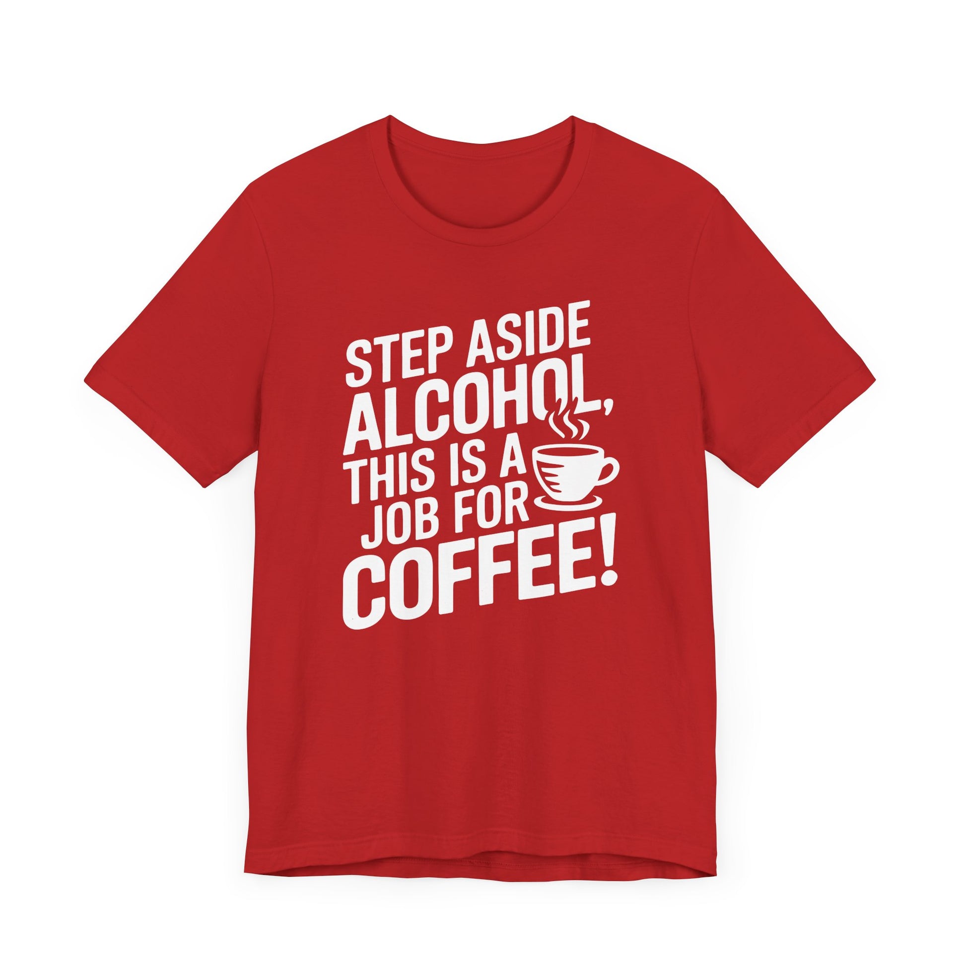 đ Product Description: For those who believe coffee is the true superhero of beverages, this shirt says it allâloud and proud. With bold white block text reading âStep aside alcohol, this is a job for coffee,â itâs the perfect tee for anyone whose day doesnât start without a cup (or three). Wear it to brunch, work, or wherever caffeine saves the day.