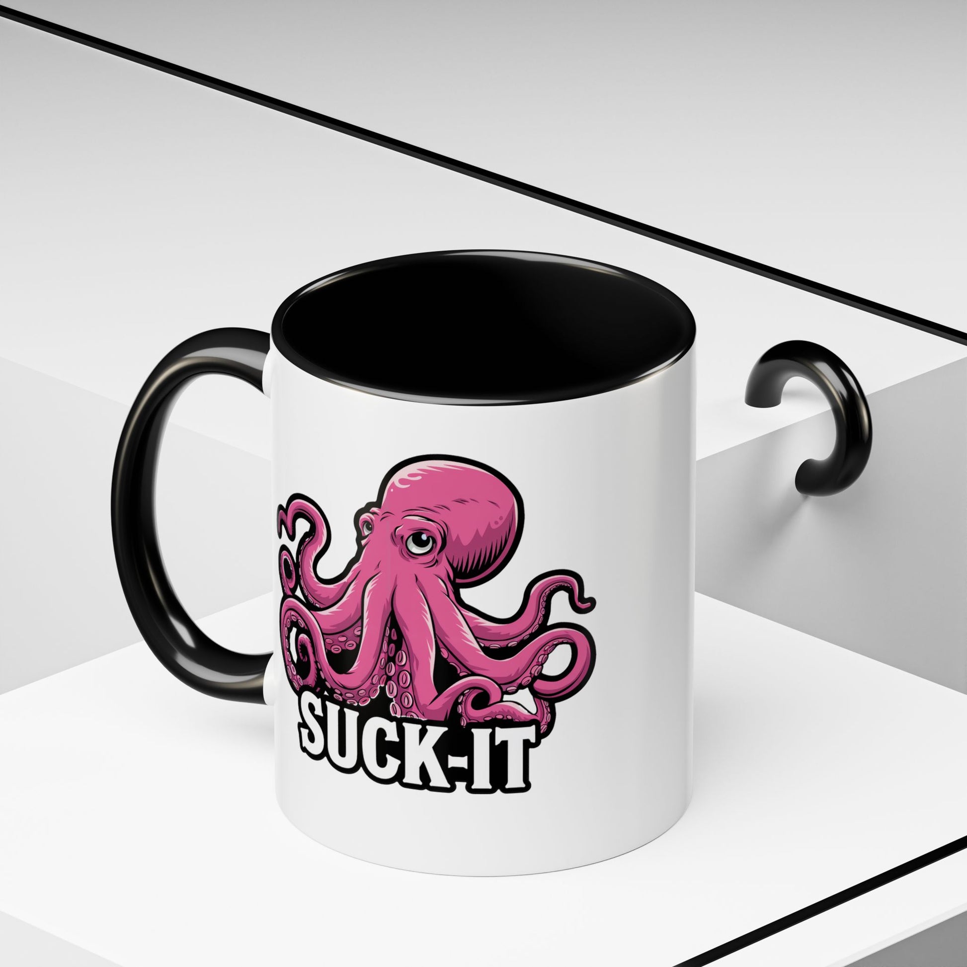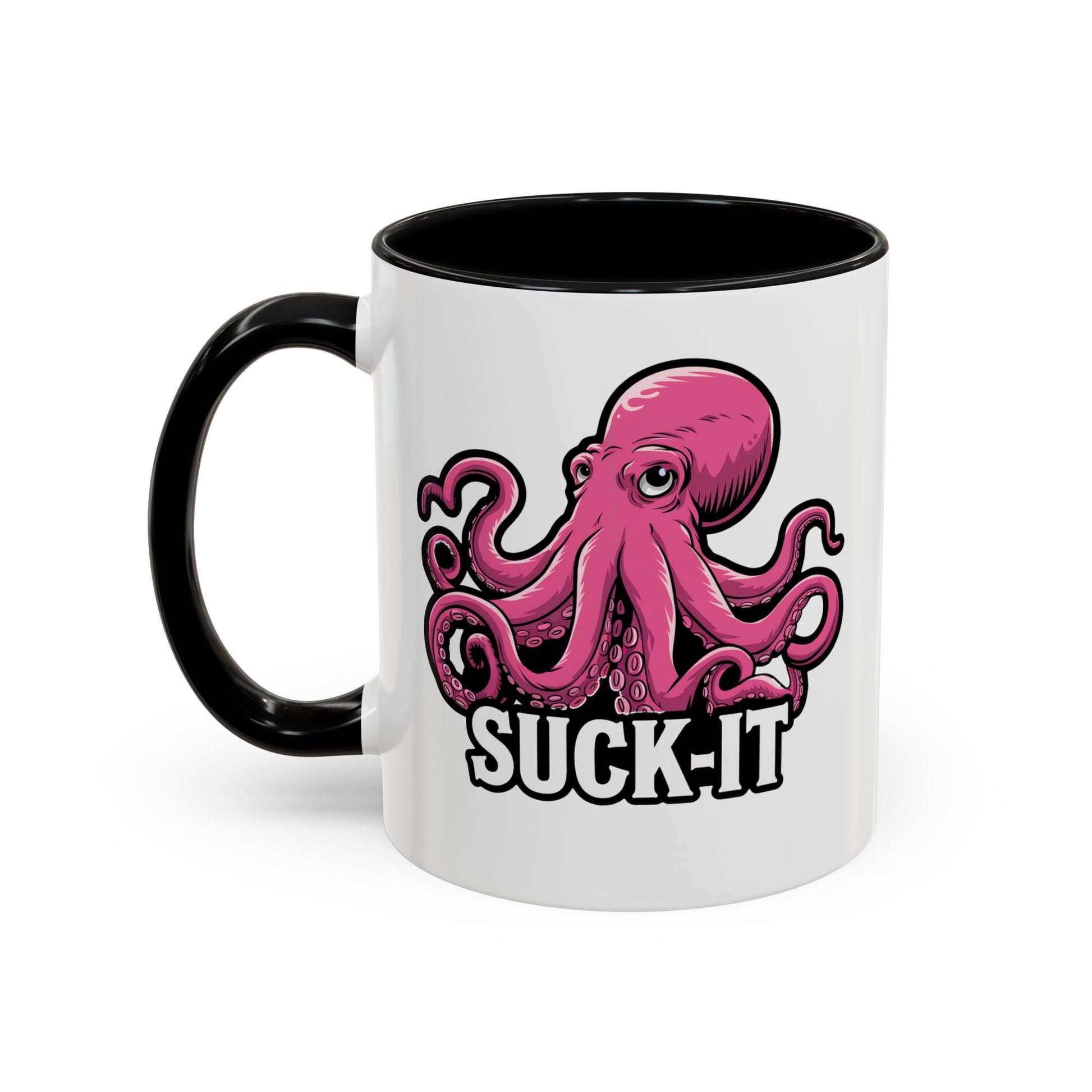 Dive into a sea of attitude with our Suck It Pink Octopus Mug! This striking 11oz mug features a vibrant, giant pink octopus dominating the design, perfectly capturing its playful yet sassy spirit. Below the octopus, the bold phrase "Suck It" makes it clear that you mean business—perfect for those moments when patience has run out!