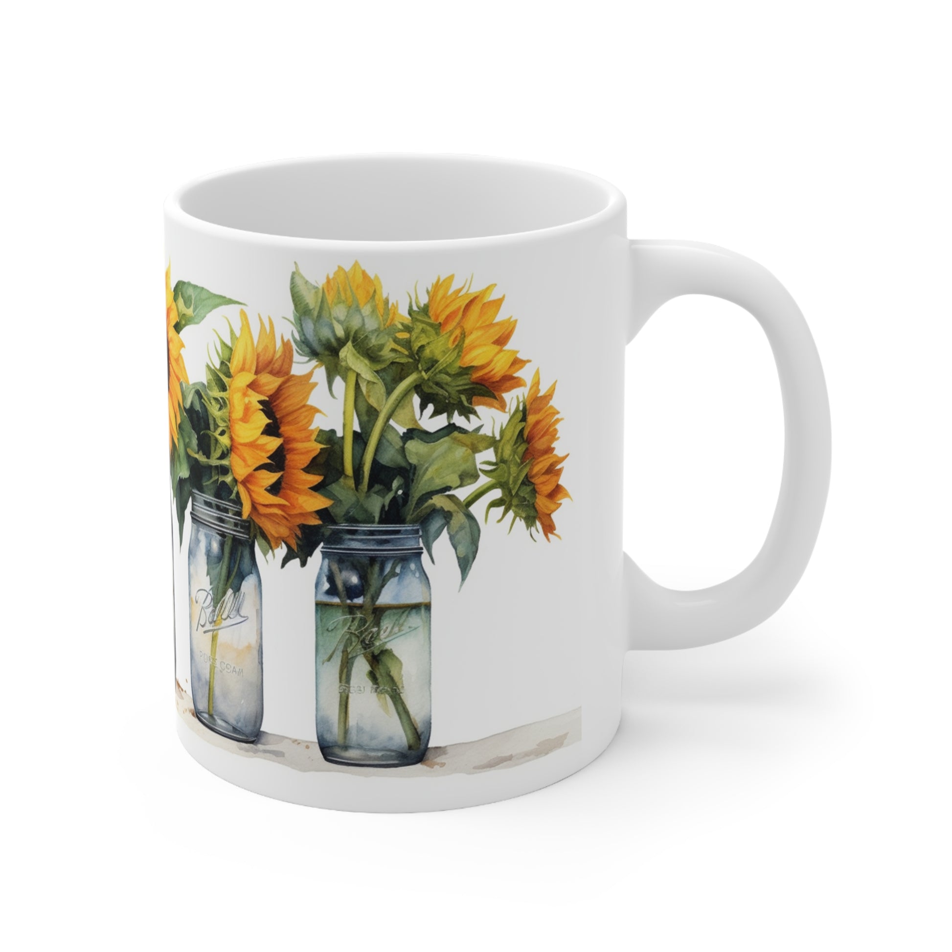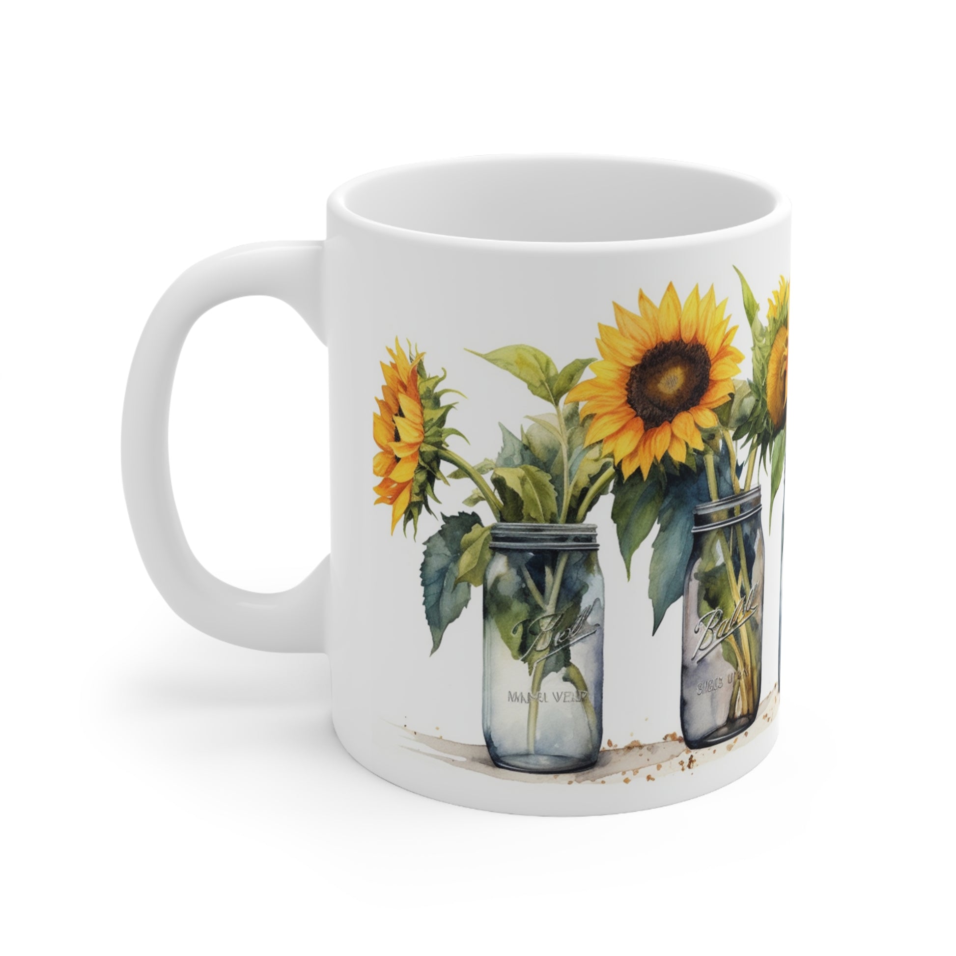 Introducing our enchanting Sunflower in a Mason Jar Coffee Mug! This delightful 11oz mug is the perfect vessel to enjoy your favorite hot beverages while basking in the beauty of nature's golden charm.