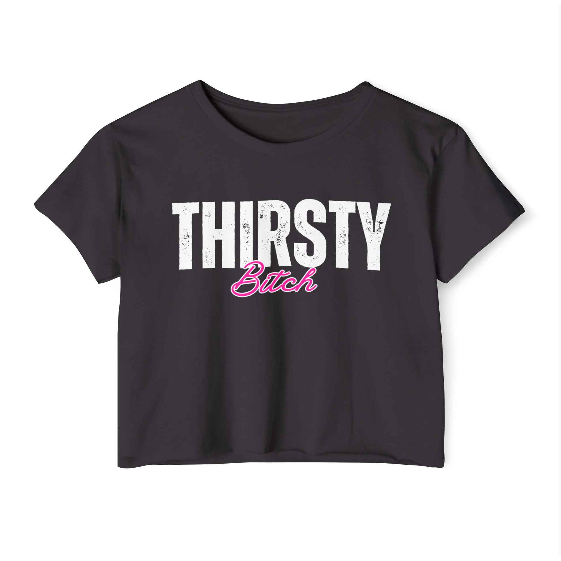 Thirsty Bitch Crop Top | Funny Festival Crop Tee | Girls Night Out Shirt | Relaxed Fit Graphic Tee | Party Clubwear