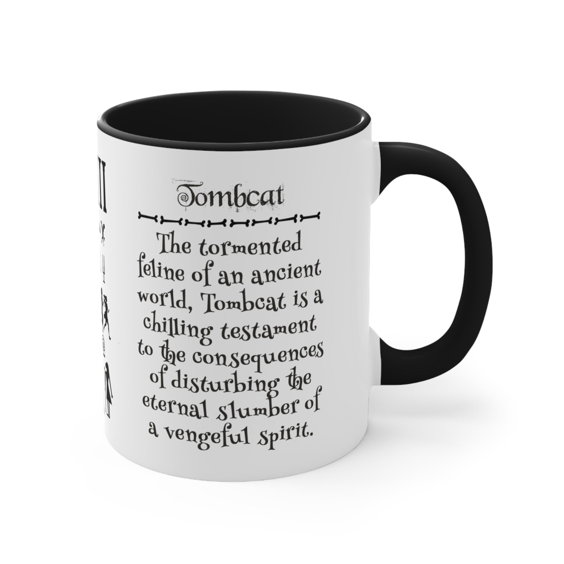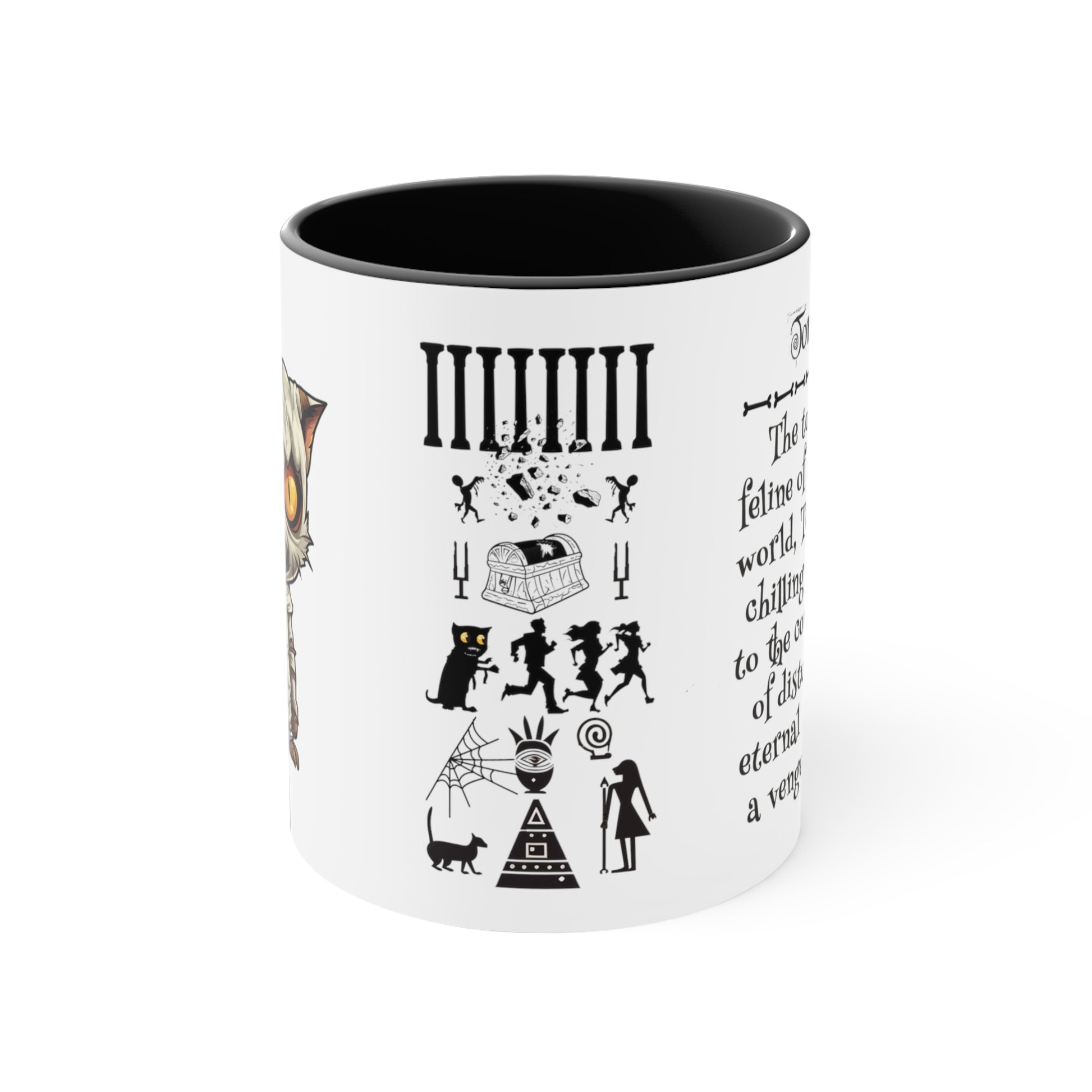 Each 11oz ceramic mug boasts a black accented interior and a sturdy black handle, adding a touch of sophistication and contrast to the whimsical cat designs. These mugs are perfect for sipping your favorite brews during the Halloween season or all year round. These are Java Jargon originals with each mug featuring the adorable characters and their background stories. On the spine of each mug are fun and playful iconic depictions of each characters personality.